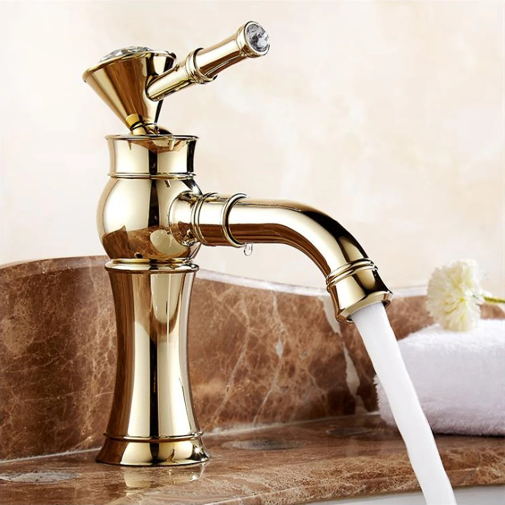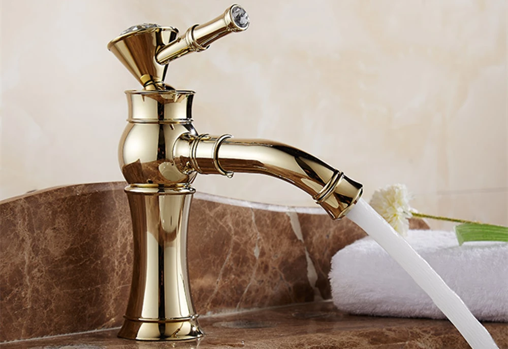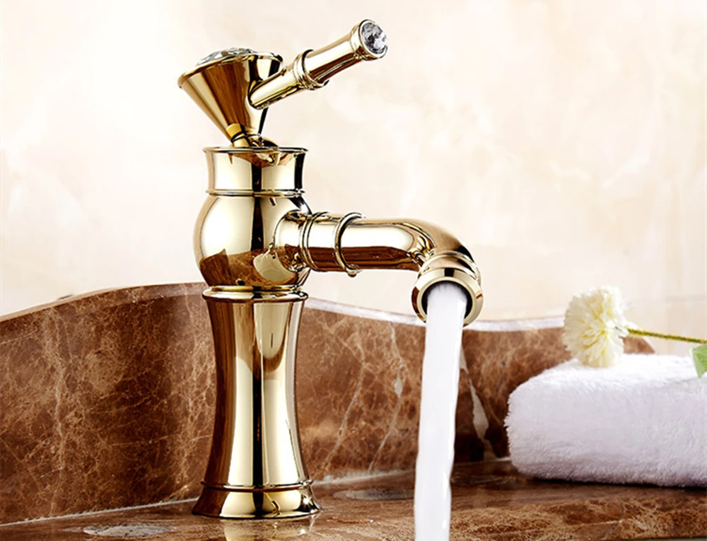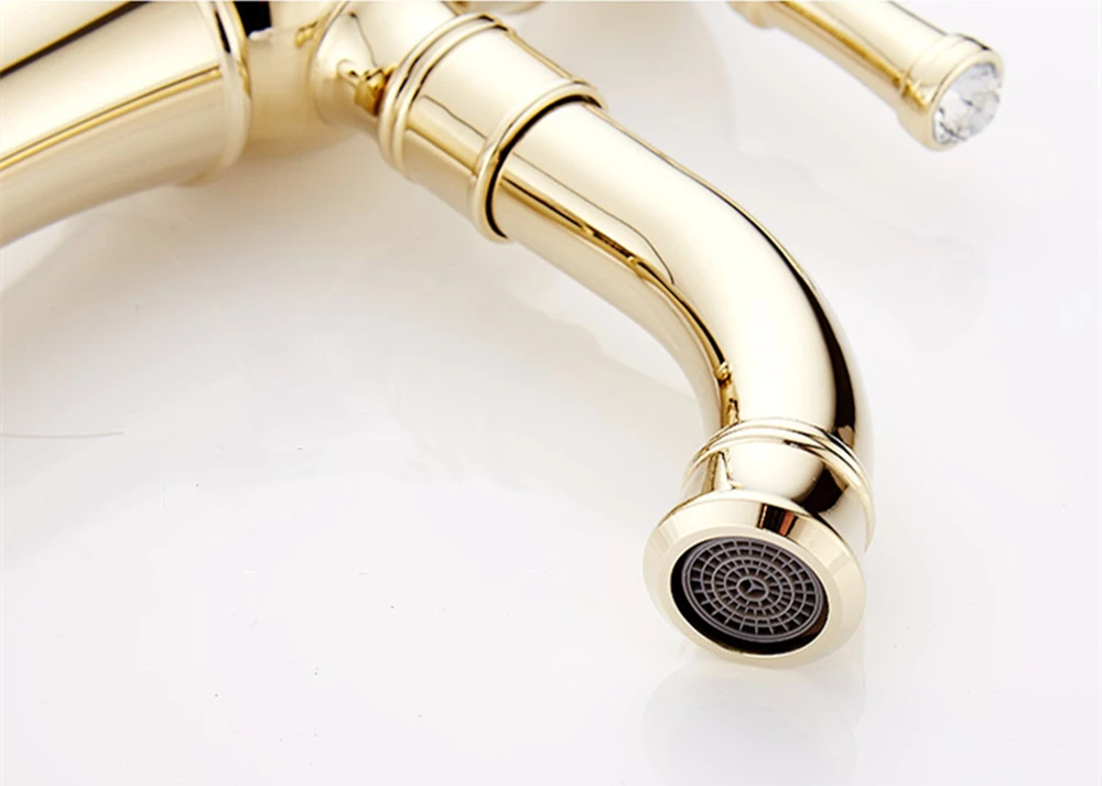 Зеркальный золотой кран для ванной комнаты, твердый латунный Смеситель для горячей и холодной воды, краны, полированные, на бортике, 360 градусов, вращающиеся краны