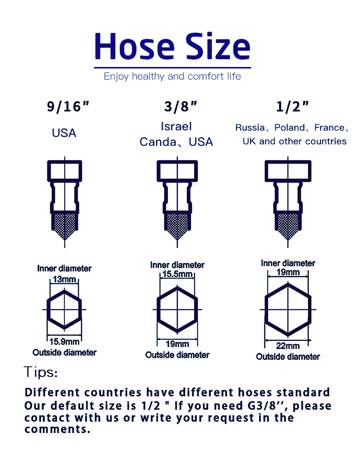 Примечание: размер соединения трубы defauct включает 1/2 ", пожалуйста, свяжитесь с нами, если вам нужно 3/8" или 9/16"