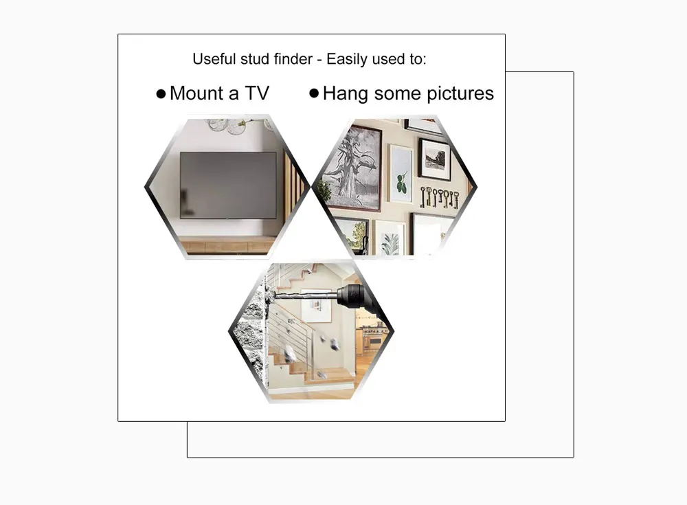 Примечание:Глубина обнаружения и обнаружение краев могут отличаться из-за содержания влаги в материалах, текстуре стен, краске и т. д.