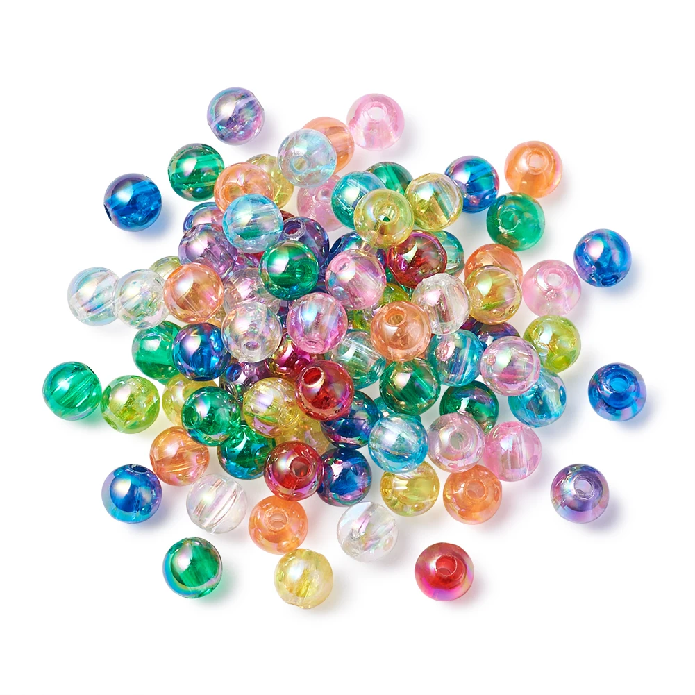 Transparent Acrylic Beads Mix, Round, AB Color, Assorted Colors<p>about 5mm in diameter, hole: 1.5mm