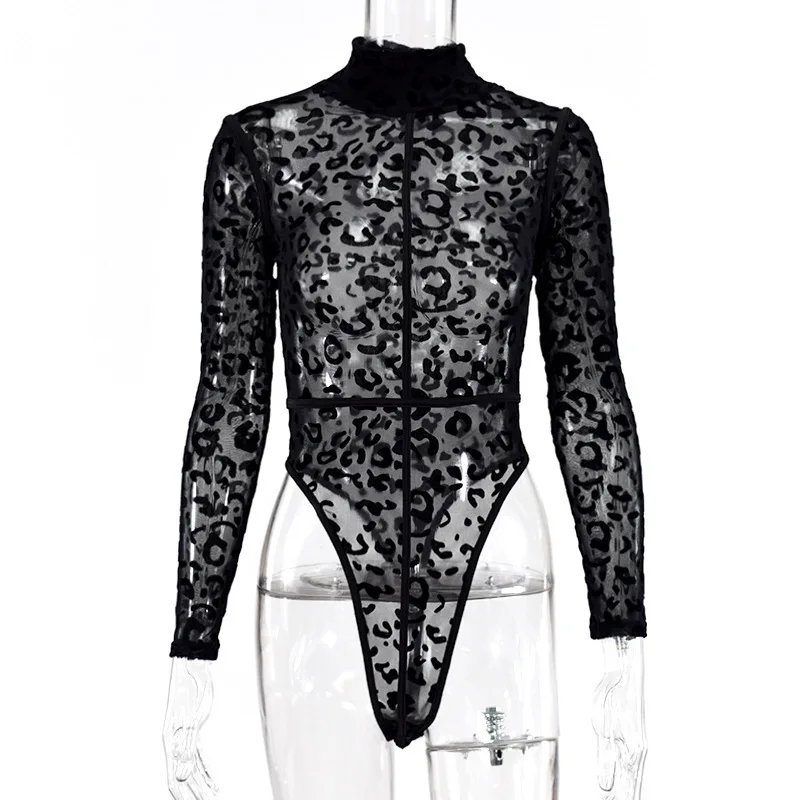 Ahagaga черный сетчатый сексуальный женский элегантный комбинезон с пышными