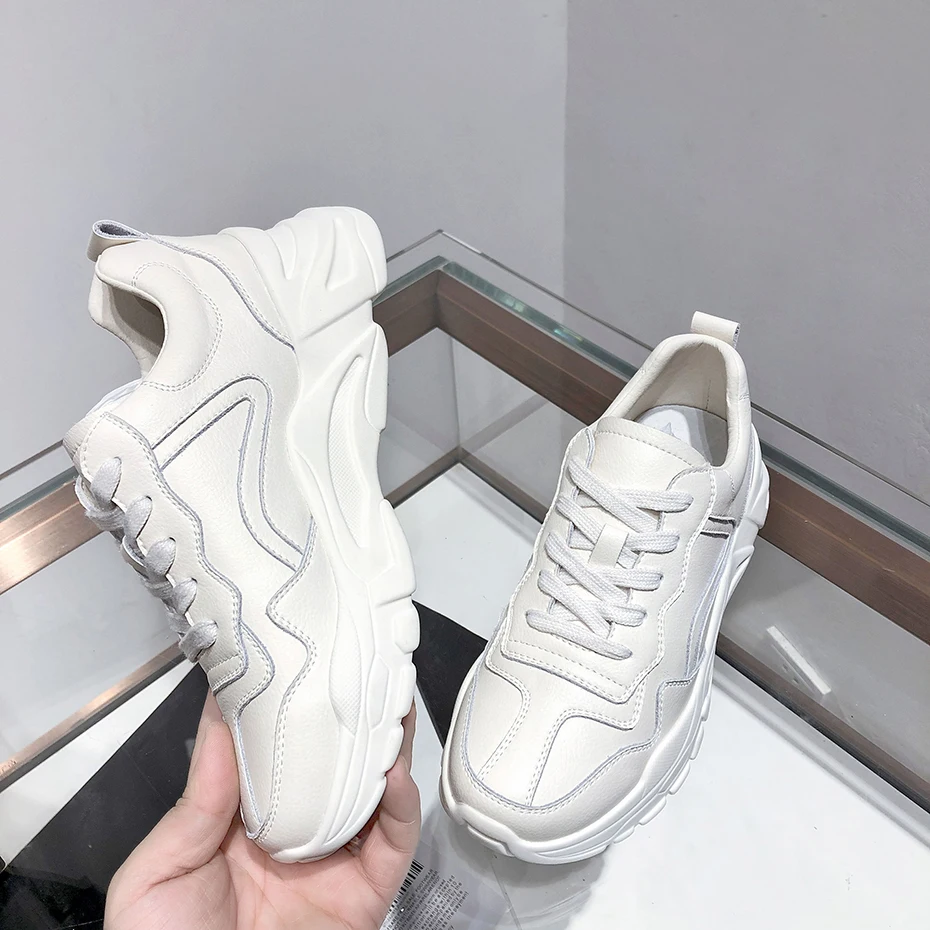 - SURU/женские кожаные кроссовки; цвет белый, молочный; повседневная обувь на платформе 5 см со шнуровкой; подкладка из свиной кожи