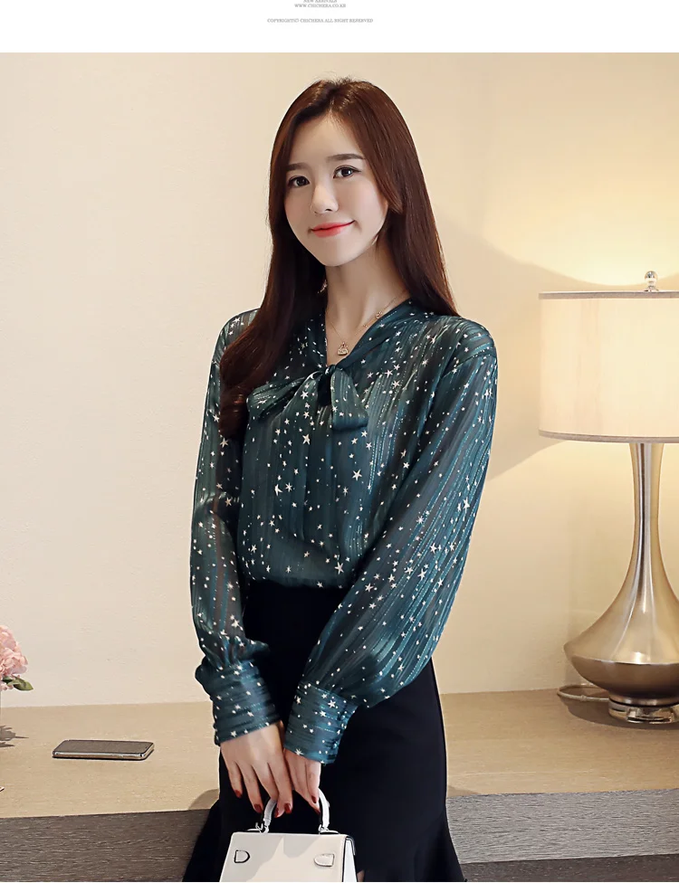 2019 весенне-летние рубашки, блузки, женские дизайнерские сексуальные топы с галстуком-бабочкой, блестящий принт со звездами, прозрачный перспективный Топ, шифоновая блузка