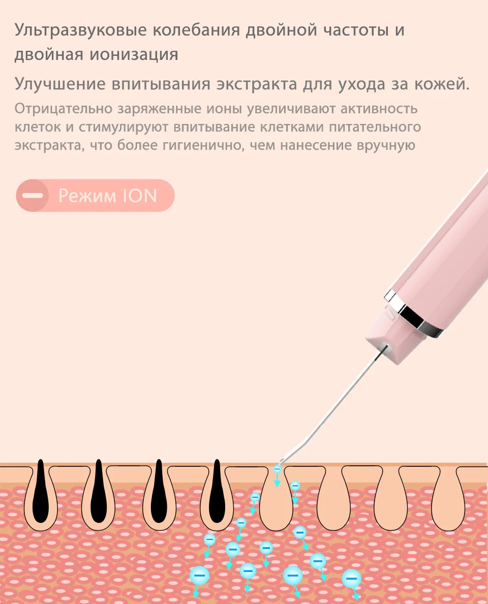Ультразвуковой скруббер для кожи лица работает для бережного очищения кожи и омоложения кожи. Эффективно удаляет и устраняет мертвые клетки, чтобы избежать укладки кутикулы. При использовании в течение нескольких дней, этот ультразвуковой очиститель для лица может облегчить меланин и грязь, твердые морщины и отбелить кожу, помогая восстановить эластичность кожи и сделать вашу кожу твердой, гладкой и нежной. Характеристика: 1-ультразвуковая очистка глубоких пор в порах 2-положительный ион: глубокое очищение кожи, удаление грязи, избыточной смазки, меланина, кутина и черных точек. 3-отрицательные ионы: питание, улучшает тонус кожи, уменьшает морщины и отбеливает кожу. 4-ems стимуляция микро-тока, омолаживающая кожа. 5-нарезающий массаж: массирует и удаляет морщины, укрепляет и подтягивает кожу.