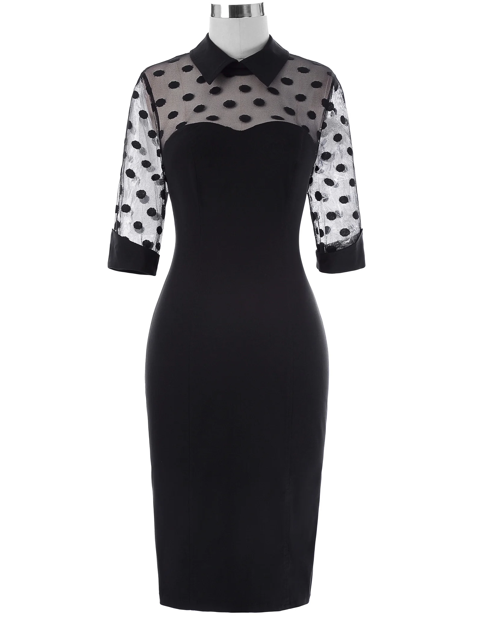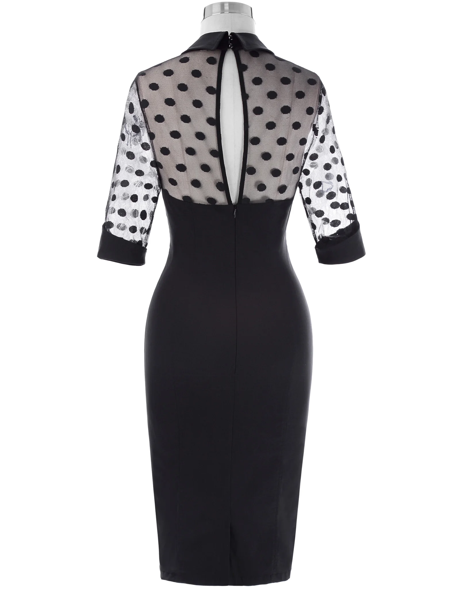 Платье Особенности | 1) с коротким рукавом 2) с отворотным воротником 3) Прозрачный лиф и рукава 4) открытая спина с двумя функциональными кнопками 5) Скрытая молния сзади 6) Центральная спинка сплит-дизайн |