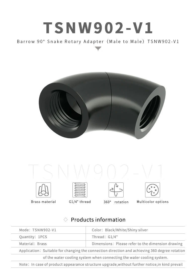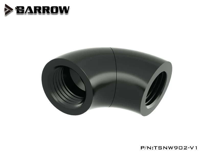 Барроу TSNW902-V1 G1 / 4 "Черный Серебряный 90 градусов двойной женский 360 градусов вращающийся водный соединитель для системы охлаждения латунь