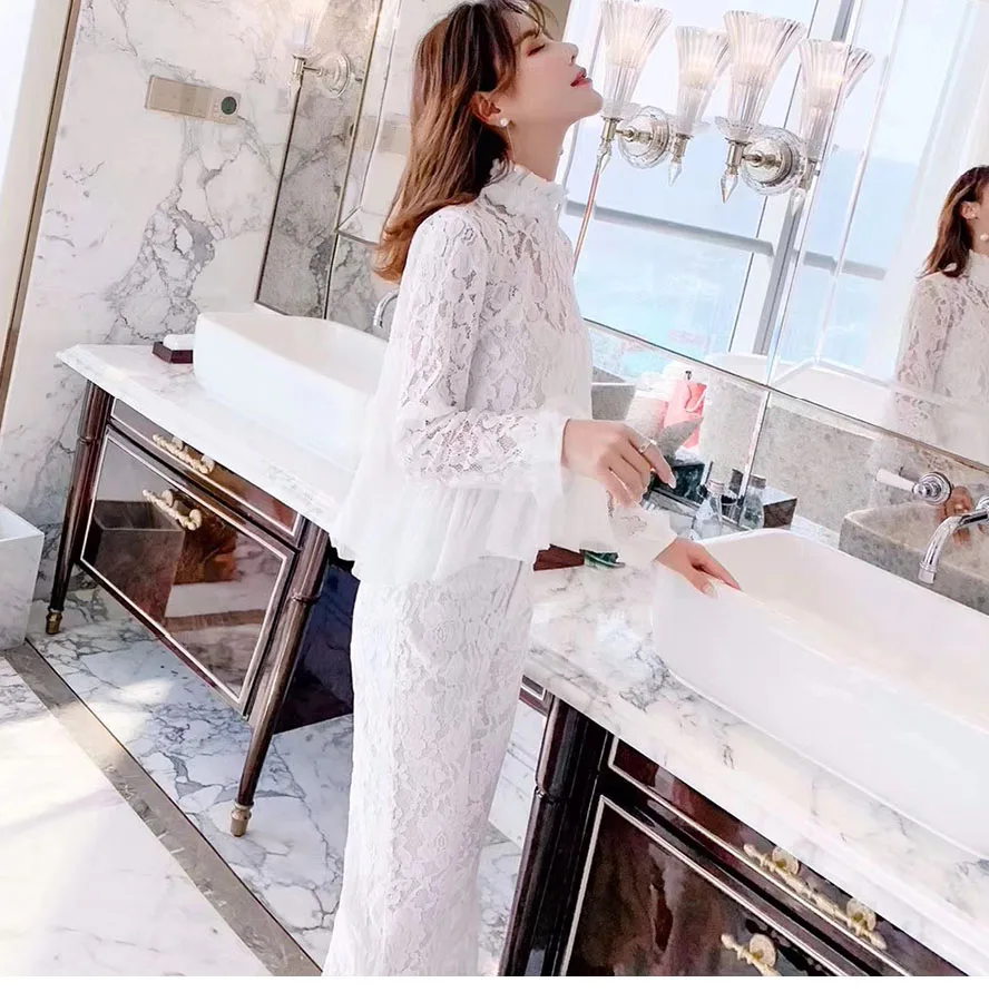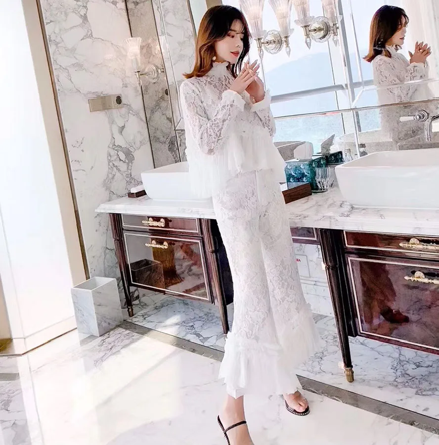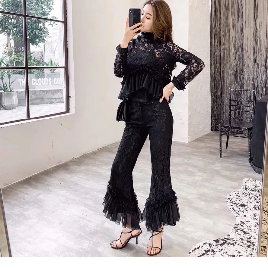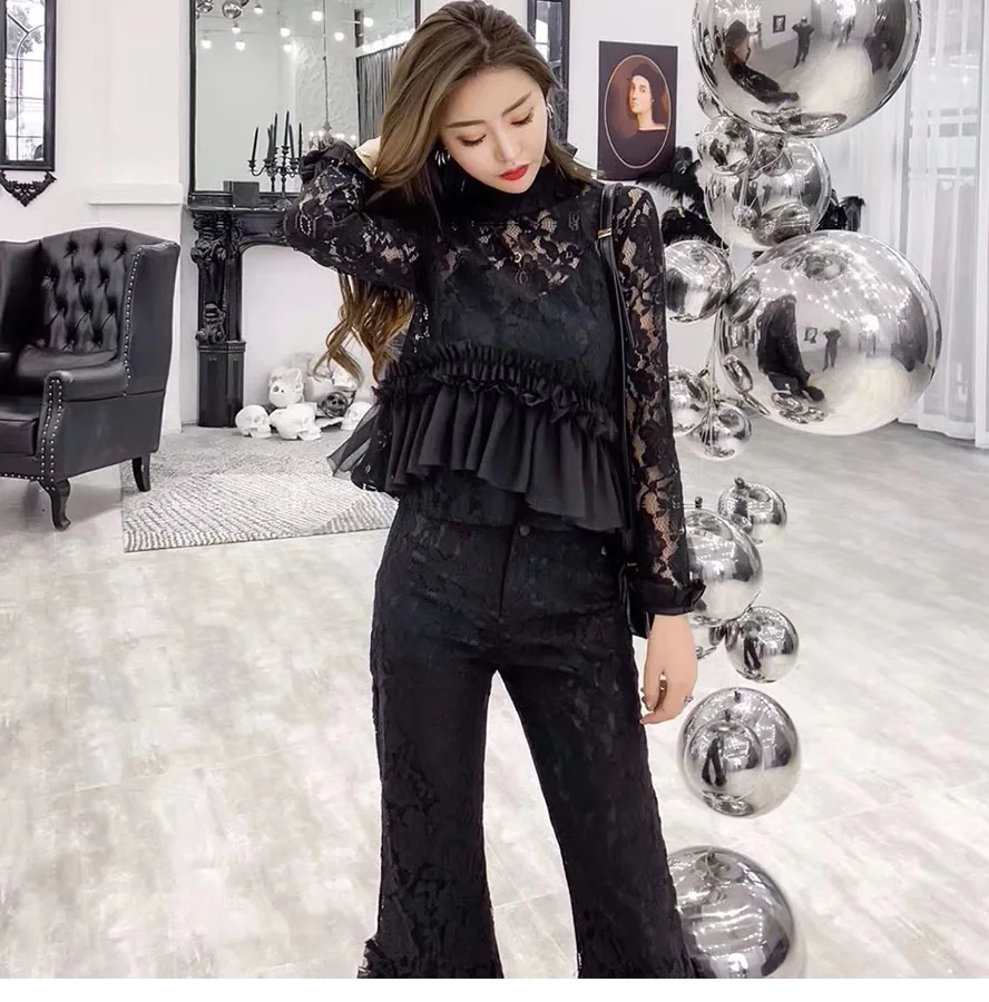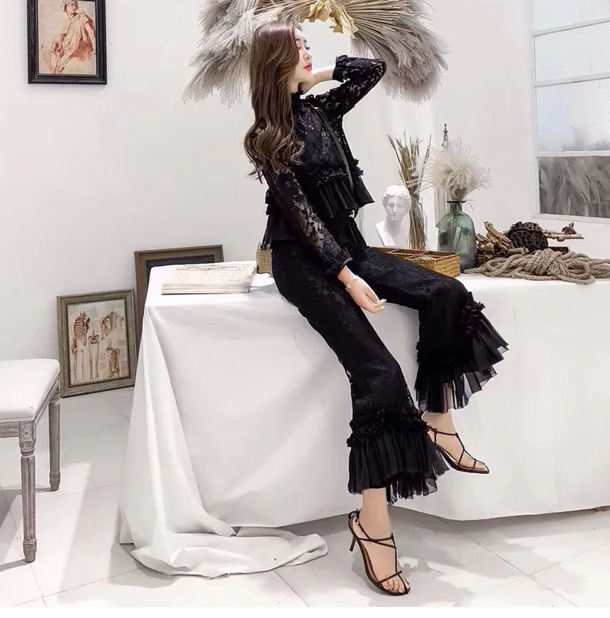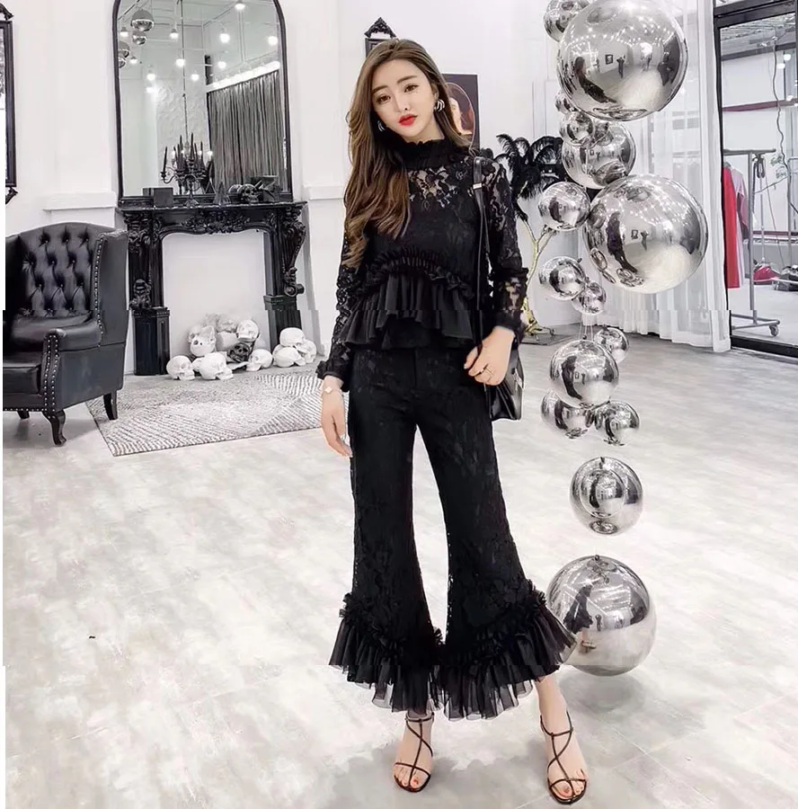 Куртка с высокой талией тонкие широкие брюки зима 2020|Спортивные костюмы| |
