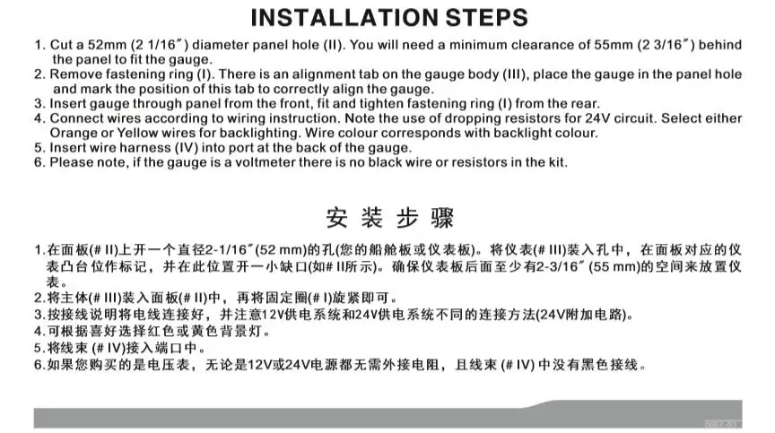 -Подключение: красный-аккумулятор (+ 9-32VDC) синий-аккумулятор (-) черный-сигнал оранжевый/желтый-подсветка (+ 9-32VDC)