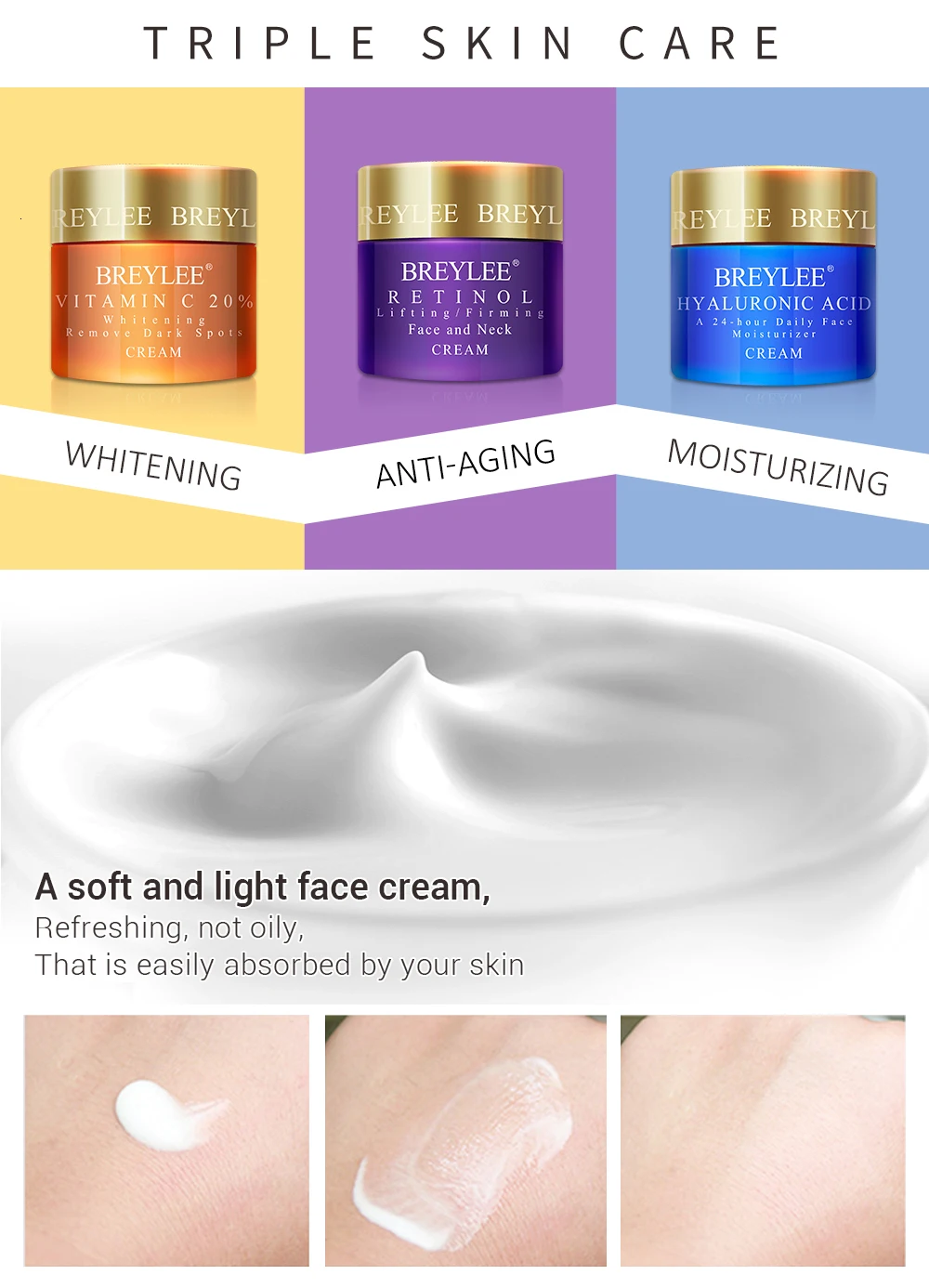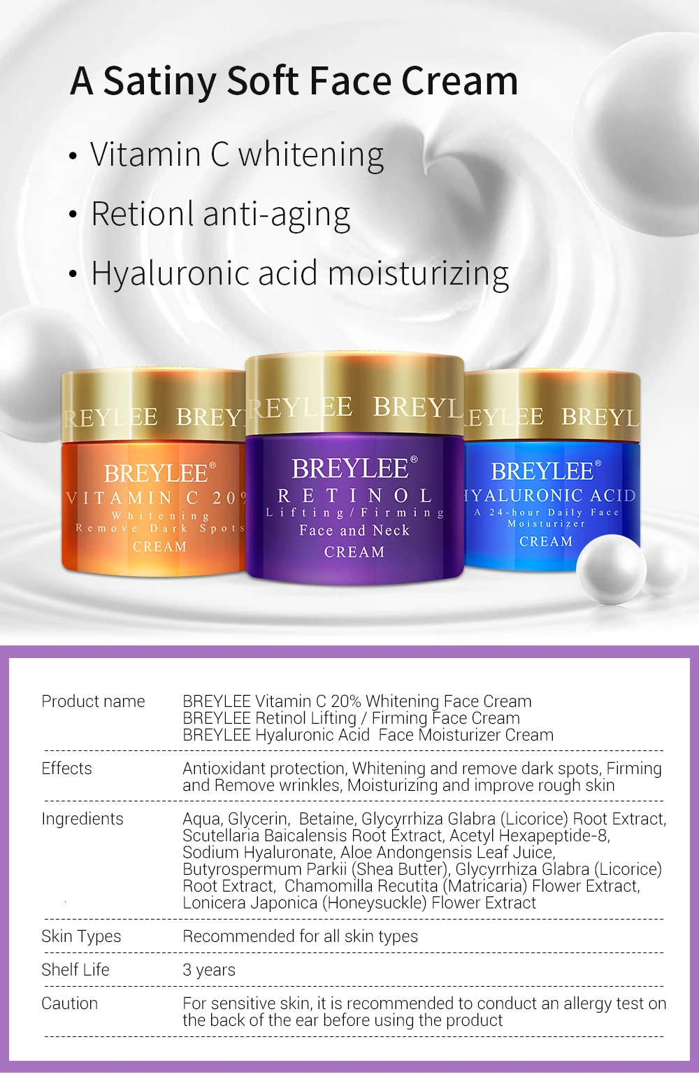 BREYLEE уход за кожей лица крем с гиалуроновой кислотой Увлажняющий дневной крем ретинол увлажняющий крем для лица против морщин и витамин С, отбеливание, лечение акне уход за кожей 40g