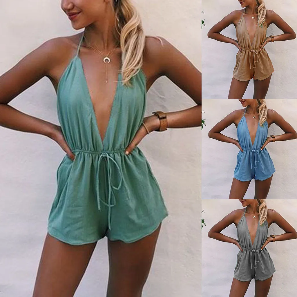 Женский Летний комбинезон с цветочным принтом без рукавов с v-образным вырезом и бантом