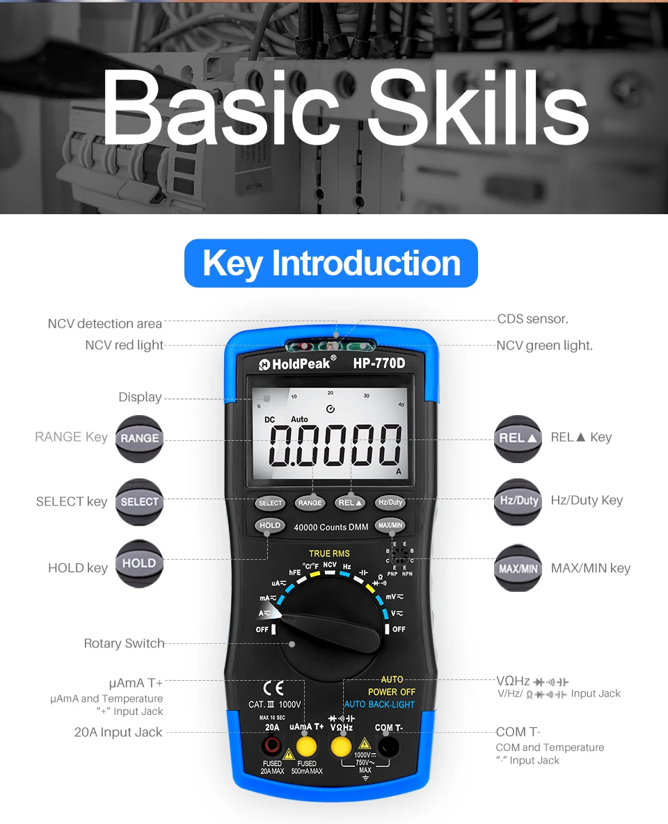 HP-770D цифровой мультиметр является практичным инструментом для электриков, любителей и общего домашнего использования.