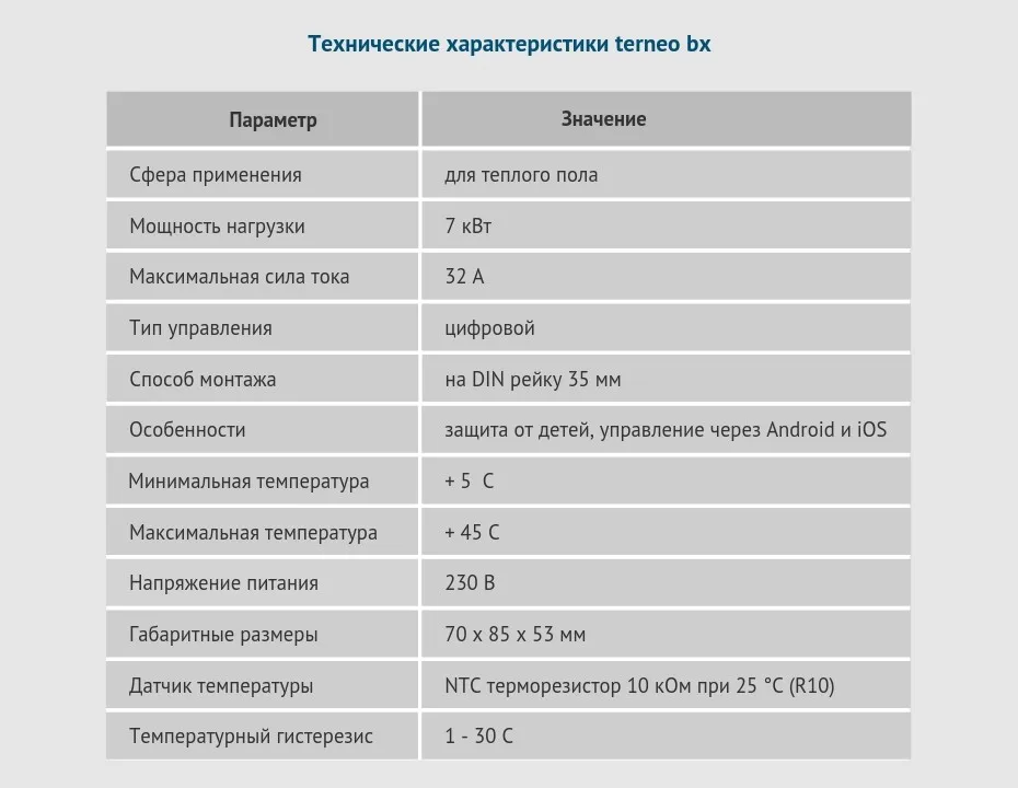 Программируемый цифровой термостат Terneo bx для управляния теплым полом мощностью до 7 000 Вт.