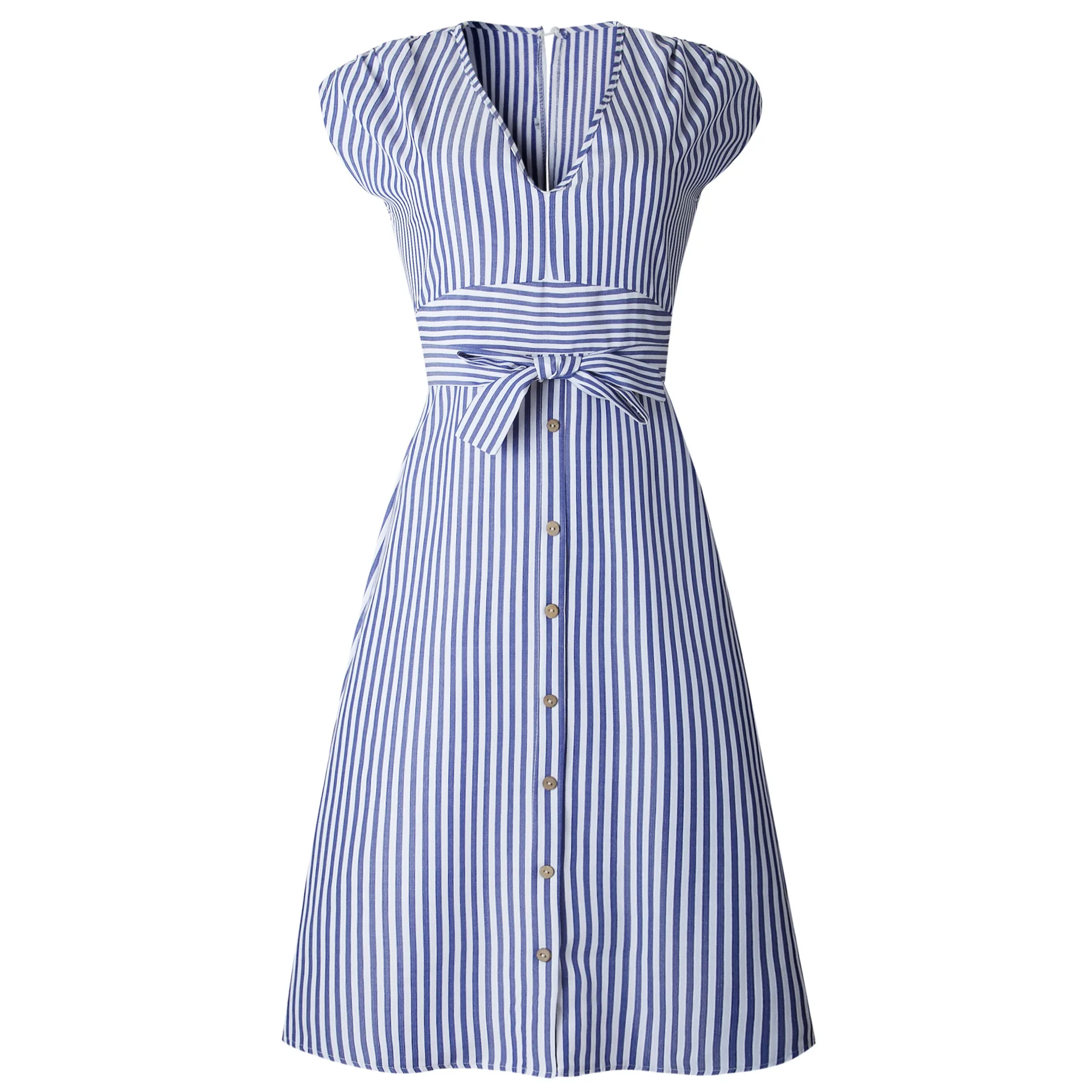 2019 летнее пляжное платье без рукавов, сексуальное Полосатое длинное платье с v-образным вырезом и пуговицами в полоску, женское повседневное вечернее платье, vestidos