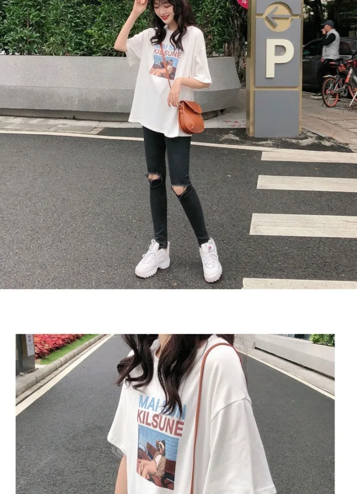 Женская футболка 100% хлопок свободная модная крутая с принтом женская большие