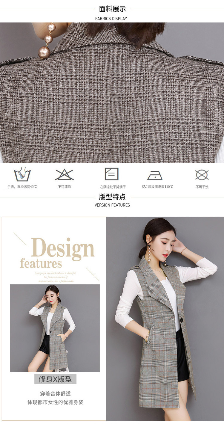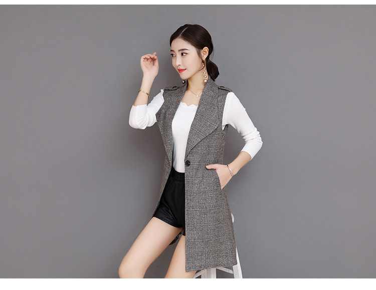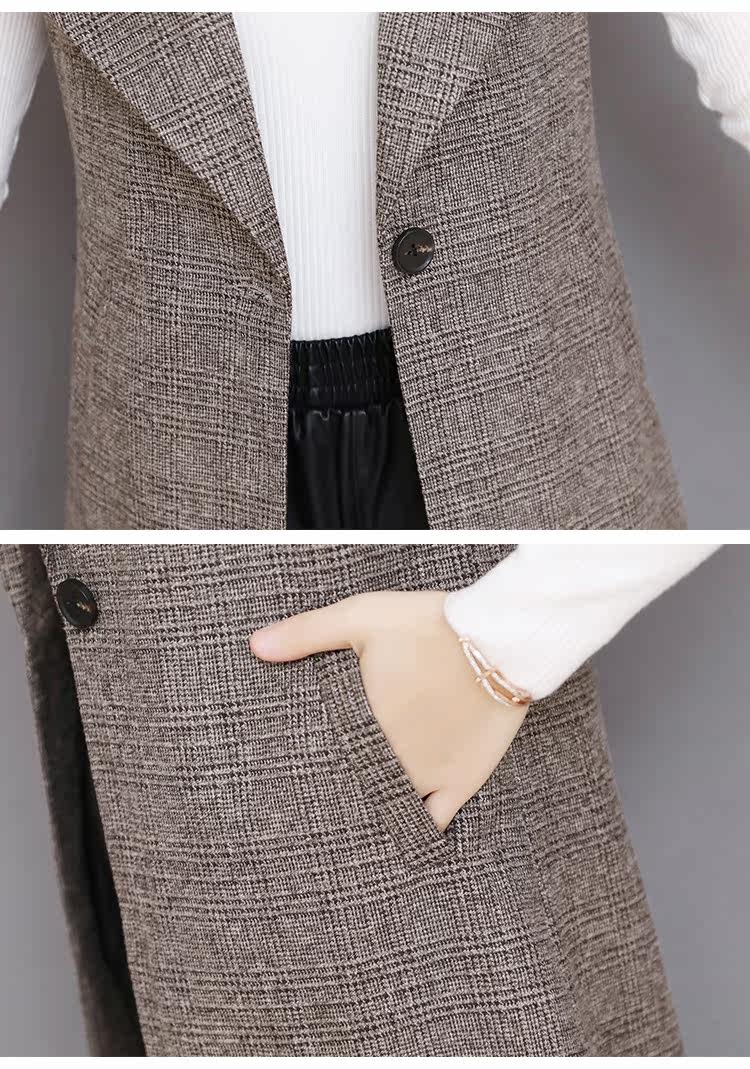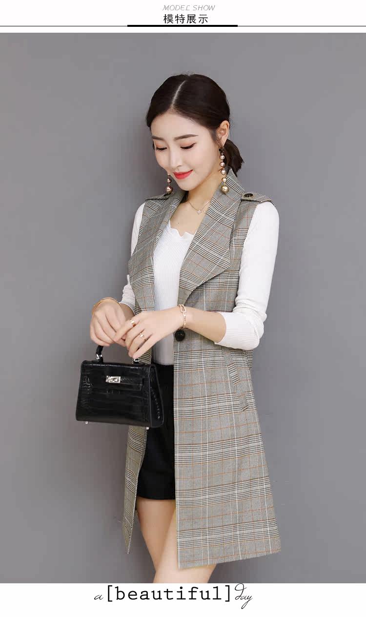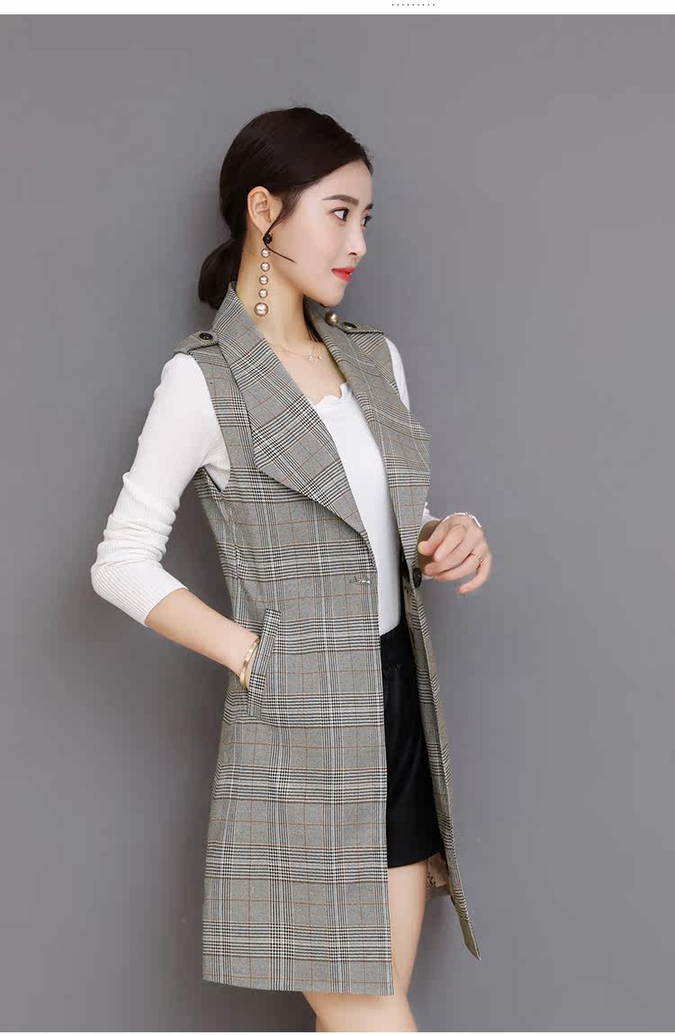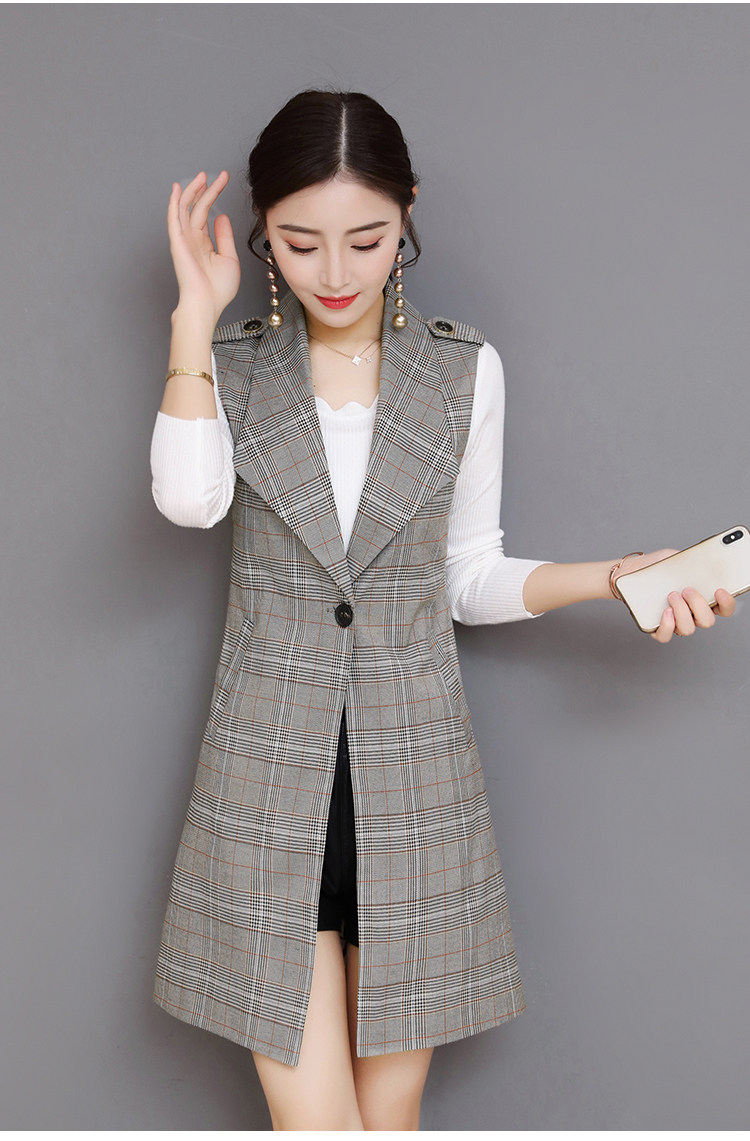 Весенний Длинный блейзер жилет женский офисный тонкий однокнопочный клетчатый женский костюм жилет Модный Элегантный жилет жакет без рукавов DV514