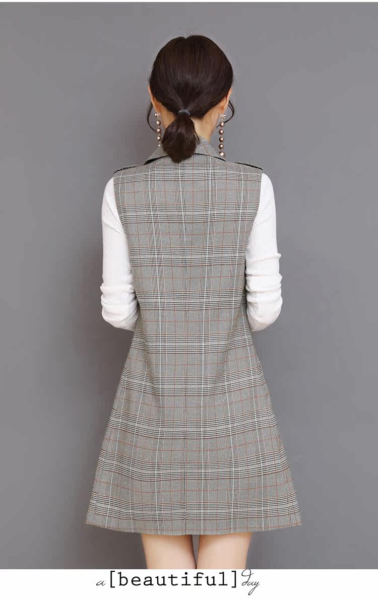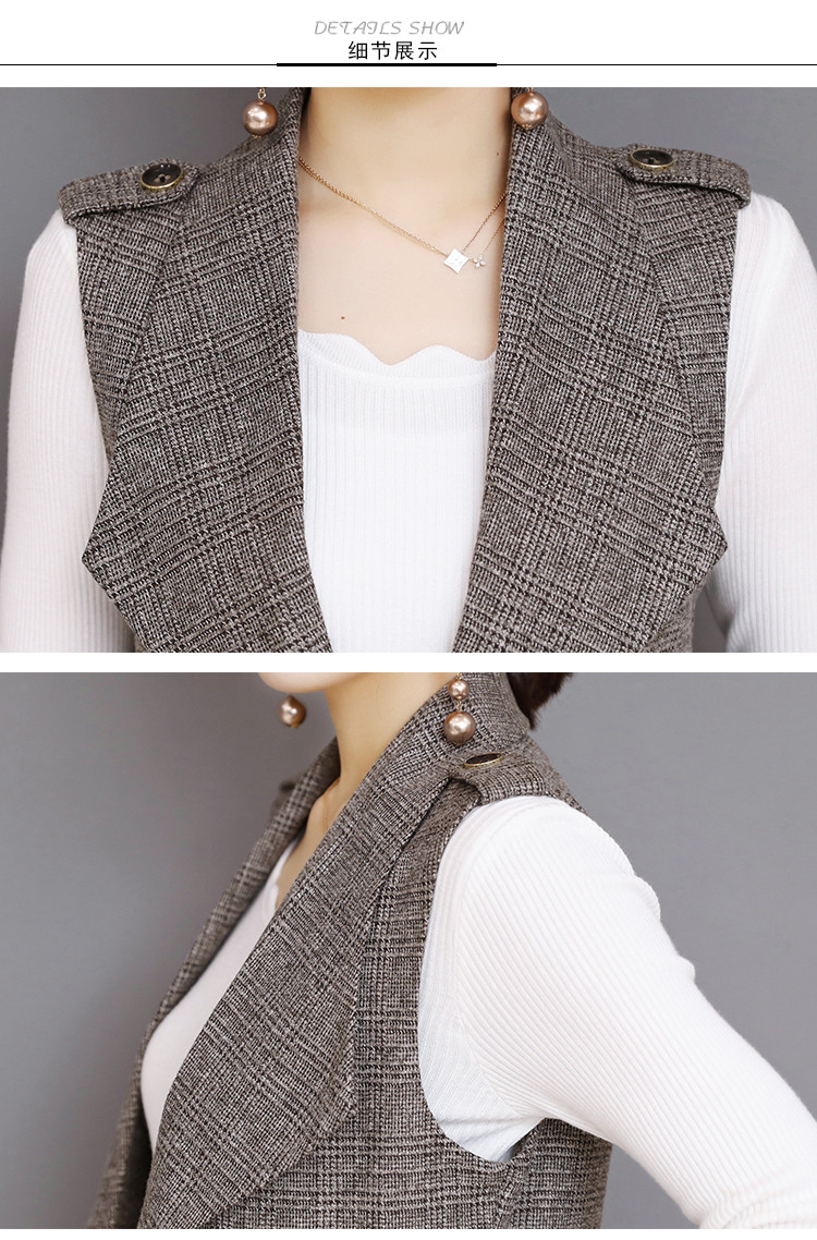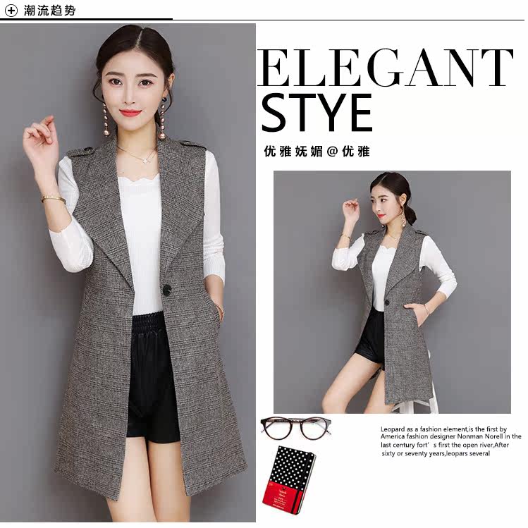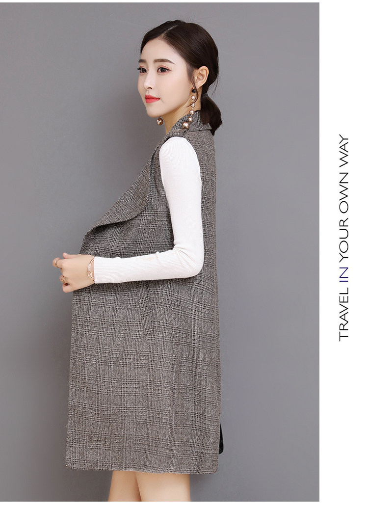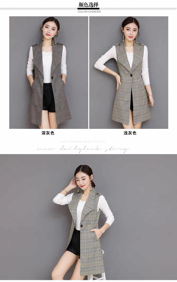 Весенний Длинный блейзер жилет женский офисный тонкий однокнопочный клетчатый женский костюм жилет Модный Элегантный жилет жакет без рукавов DV514