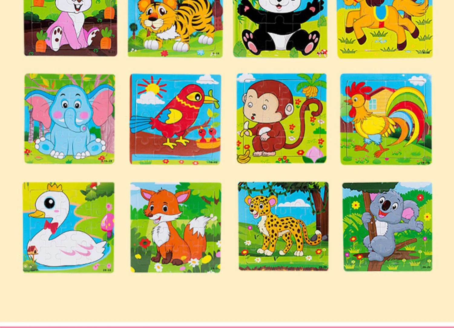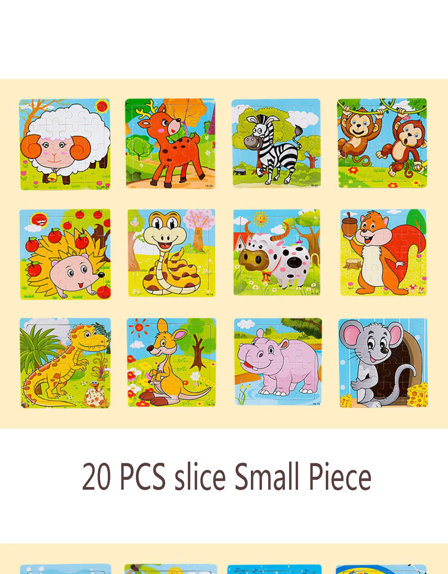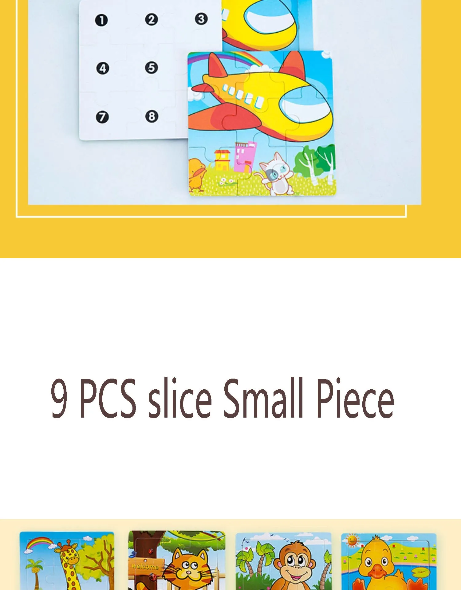9/16/20pcs slice Small Piece Puzzle Toy Children Animals and Vehicle Wooden Puzzle Jigsaw Baby Educational Toys for Kids Gift