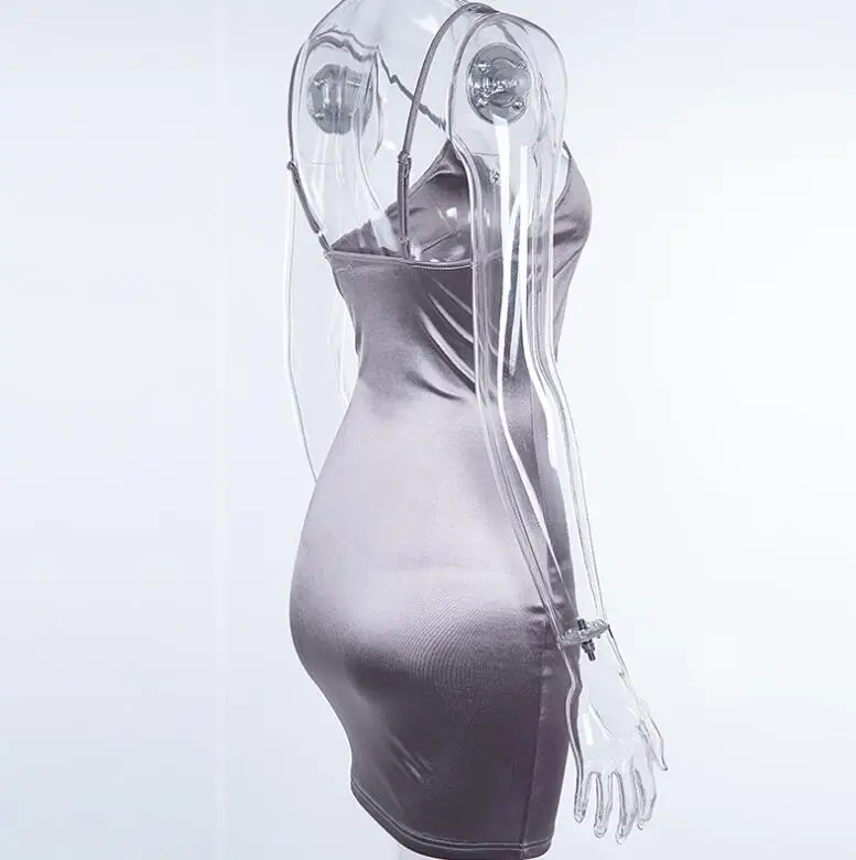 Сексуальное вечернее мини-платье, облегающее атласное блестящее Клубное платье без рукавов с v-образным вырезом, разрезом и открытой спиной, Красное Облегающее платье черного цвета DV303