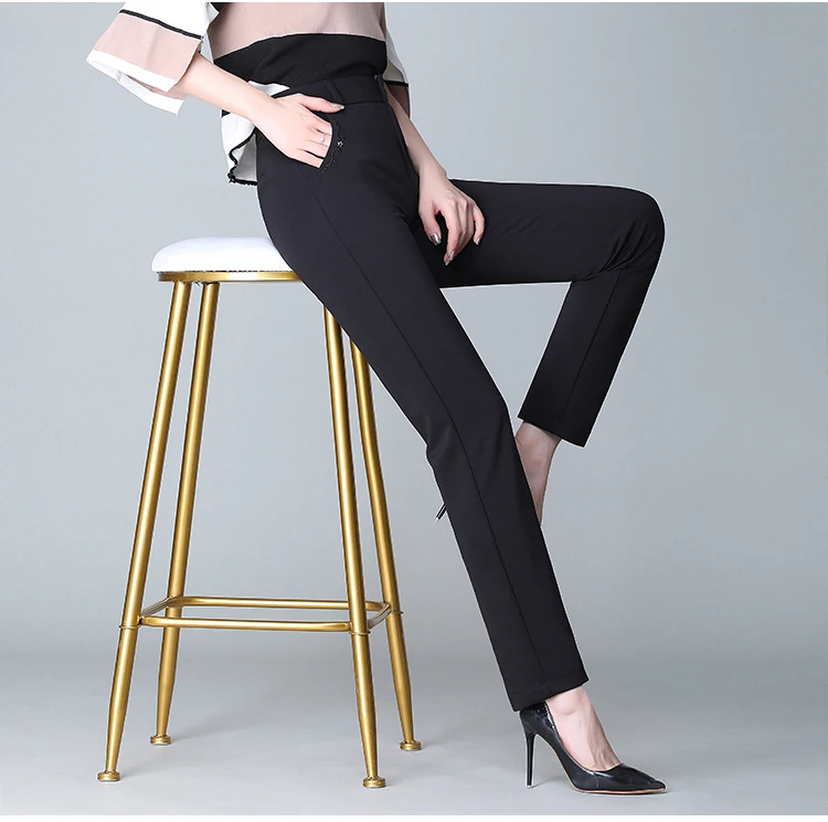 Женские брюки с высокой талией, прямые офисные брюки с карманами, большие размеры, весна-лето 2019