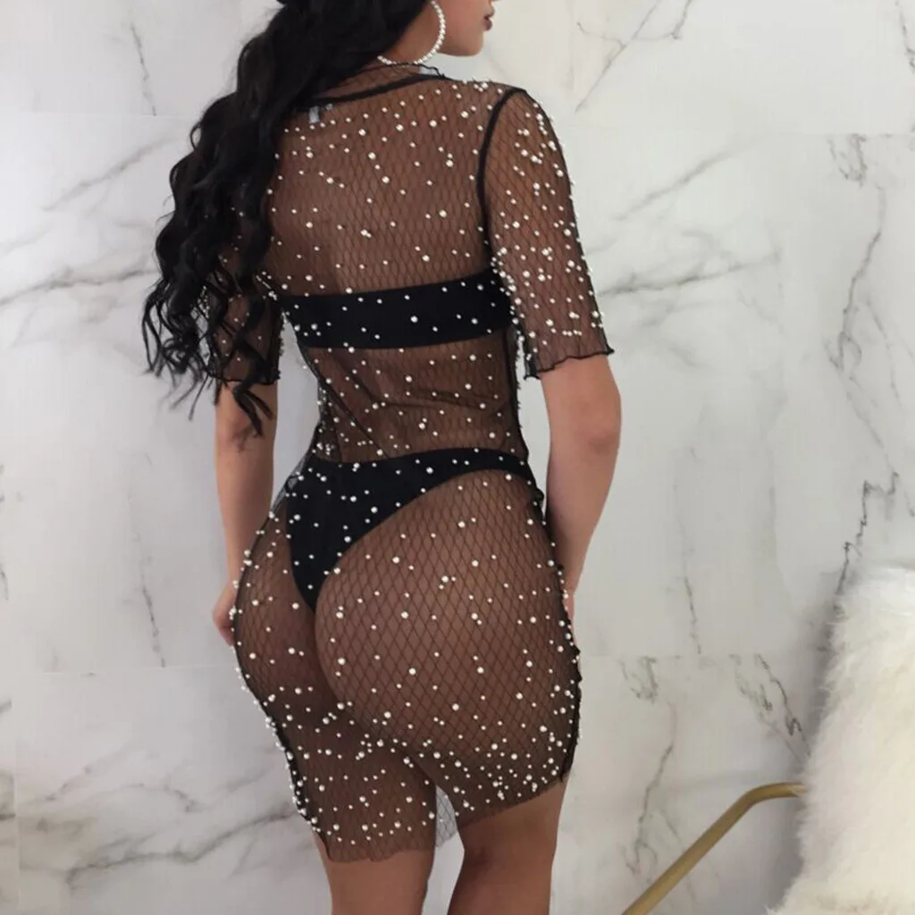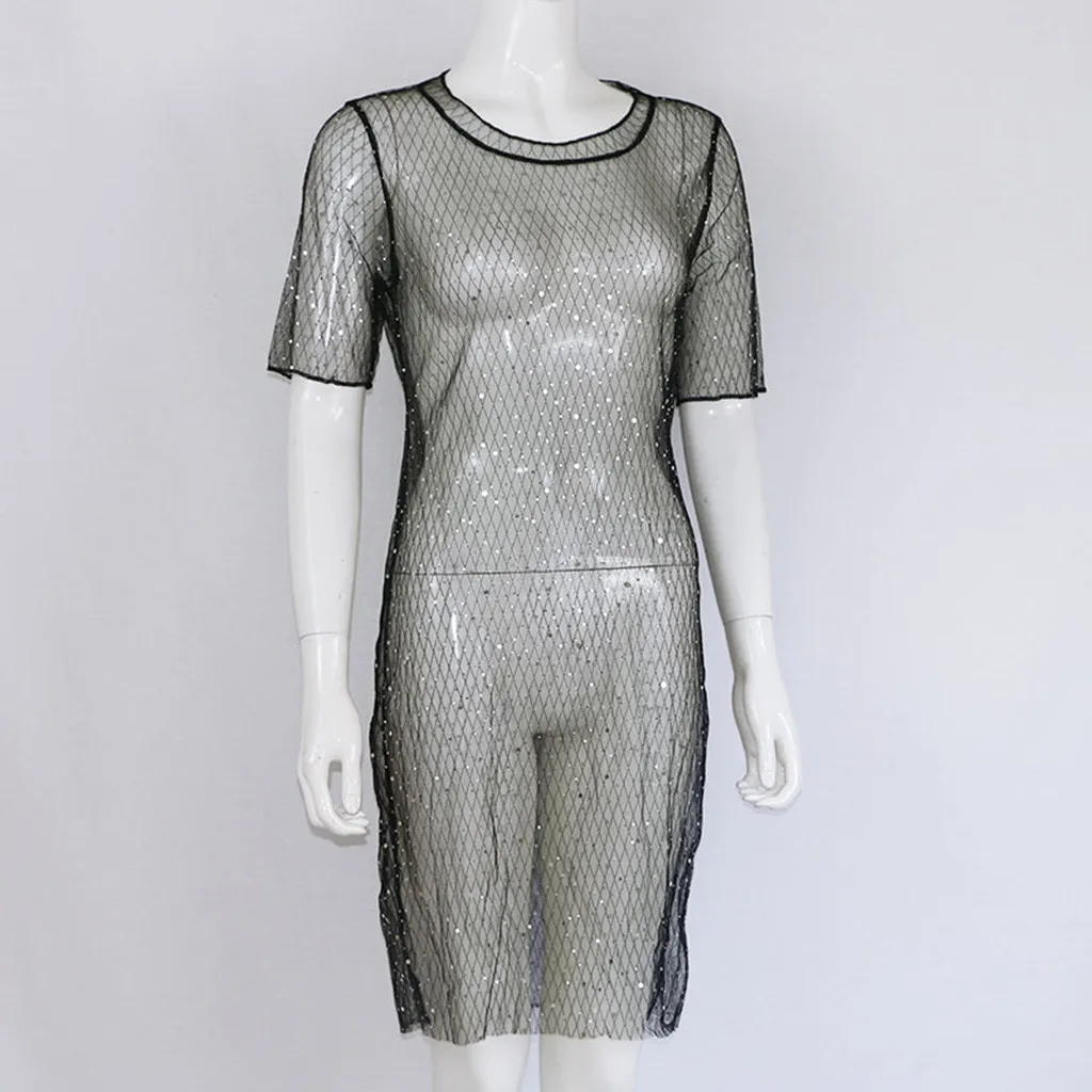 Женское сексуальное Сетчатое платье с блестками, бикини, купальный костюм, мини-платье