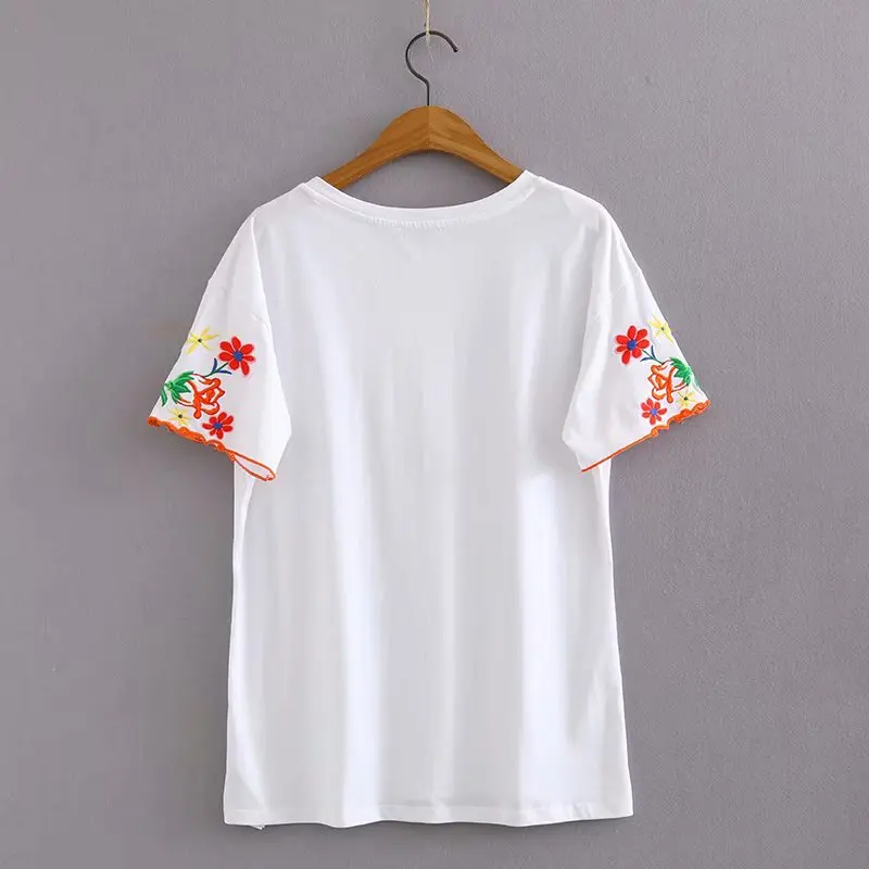 Женская летняя футболка повседневная с коротким рукавом о вырезом кружевная