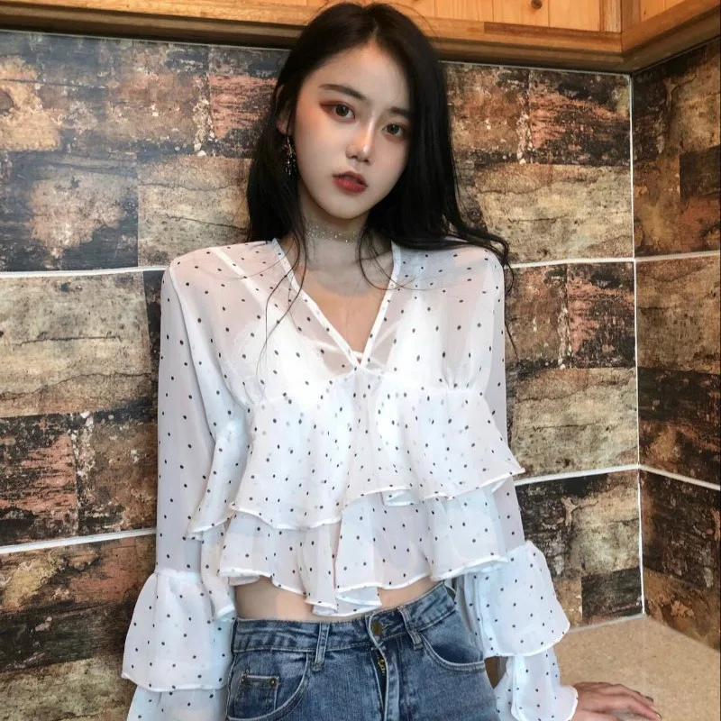 2. Базовый Топ в горошек с длинными рукавами делает вас расслабленным и уютным.