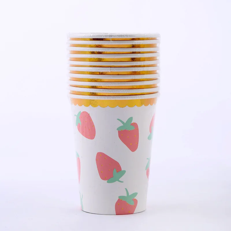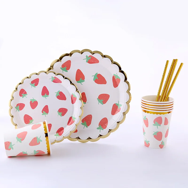 10 шт./упак. с милым клубничным принтом на день рождения Свадебная вечеринка одноразовые тарелки фрукты гриль Бумага посуда для костюмированной вечеринки по теме торт круглое блюдо; Высота каблука 18 см