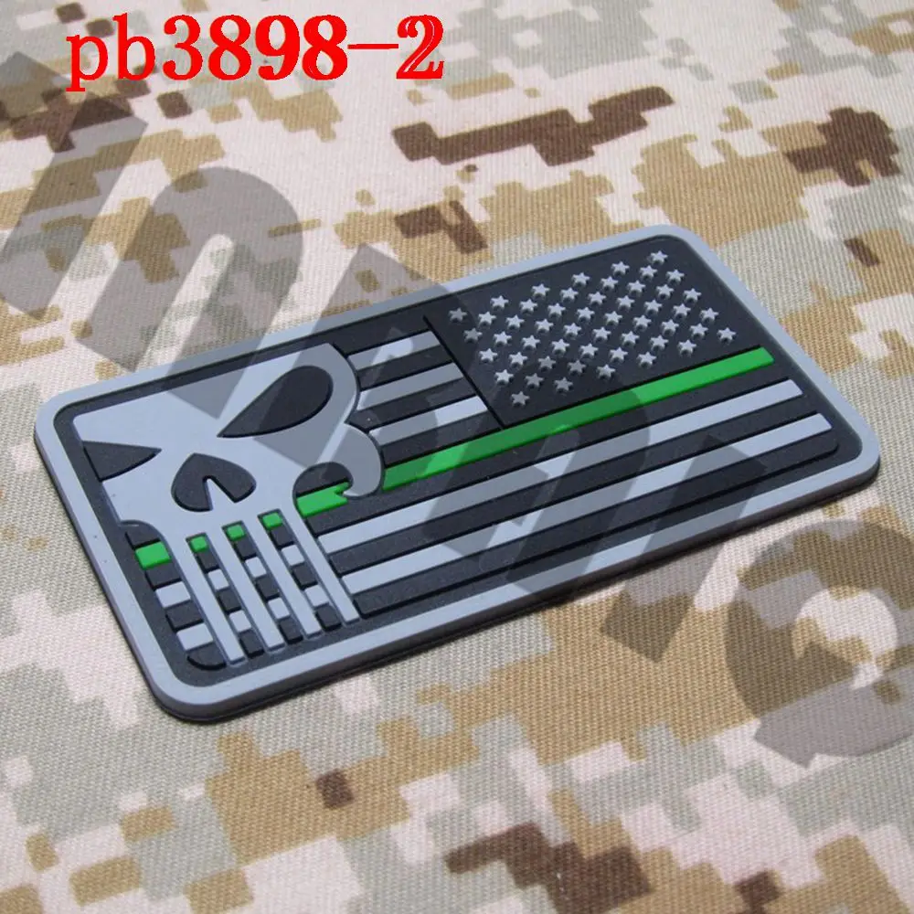 3D ПВХ Патч тонкая зеленая линия DEVGRU Печать команда Череп Американский флаг справа звезды
