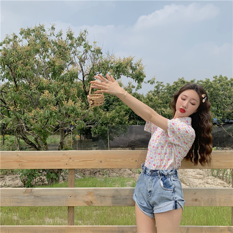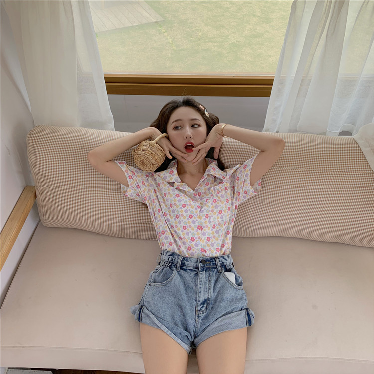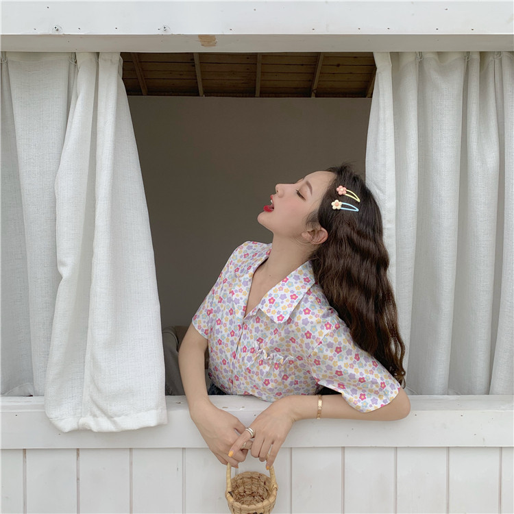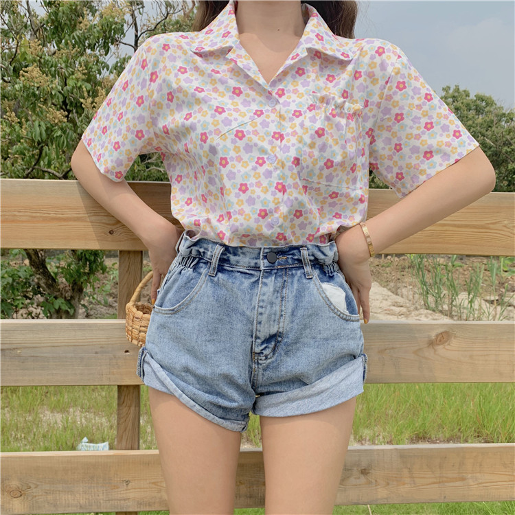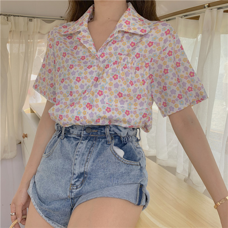 2019 корейский стиль летние винтажные шифоновые рубашки женская с короткими рукавами блузки женские