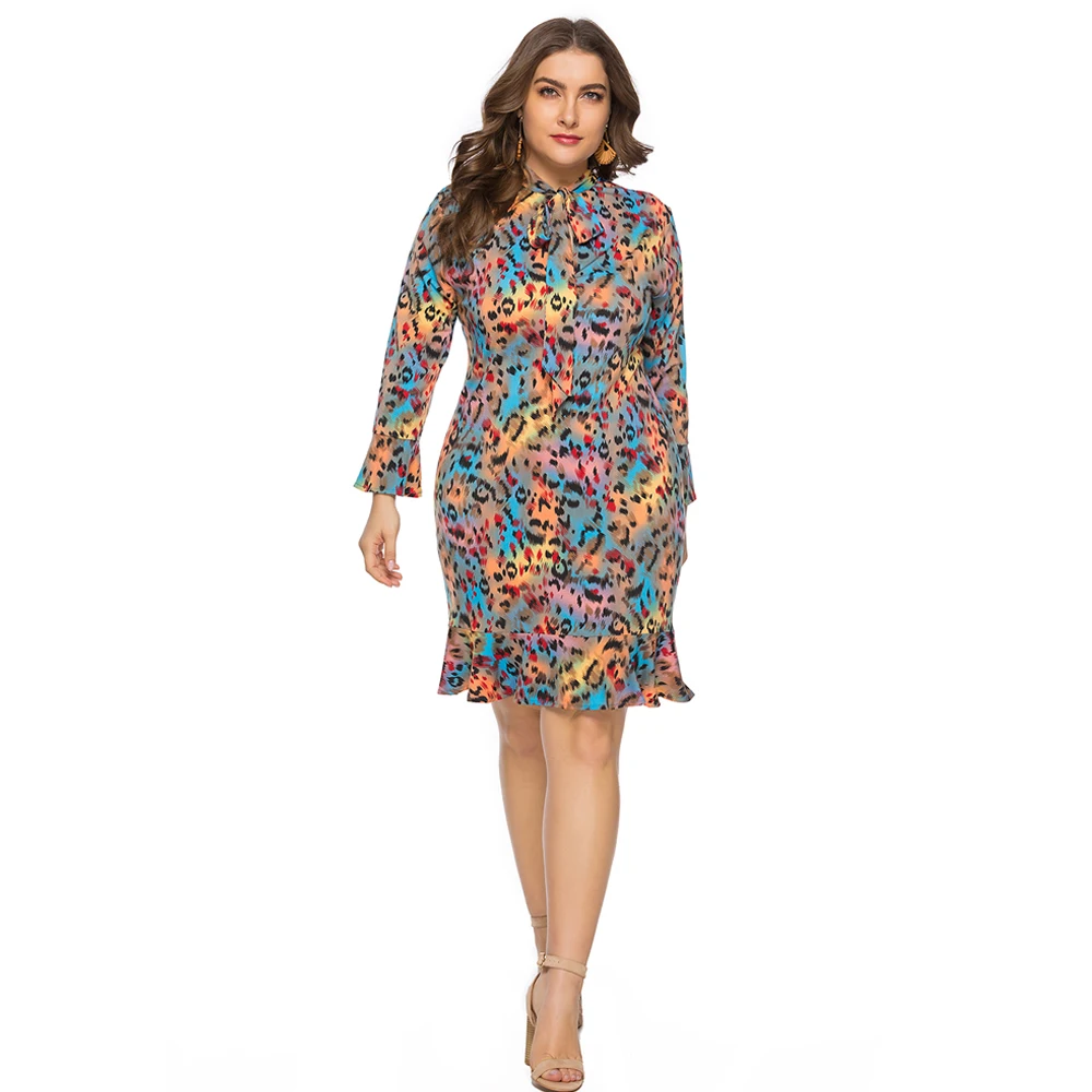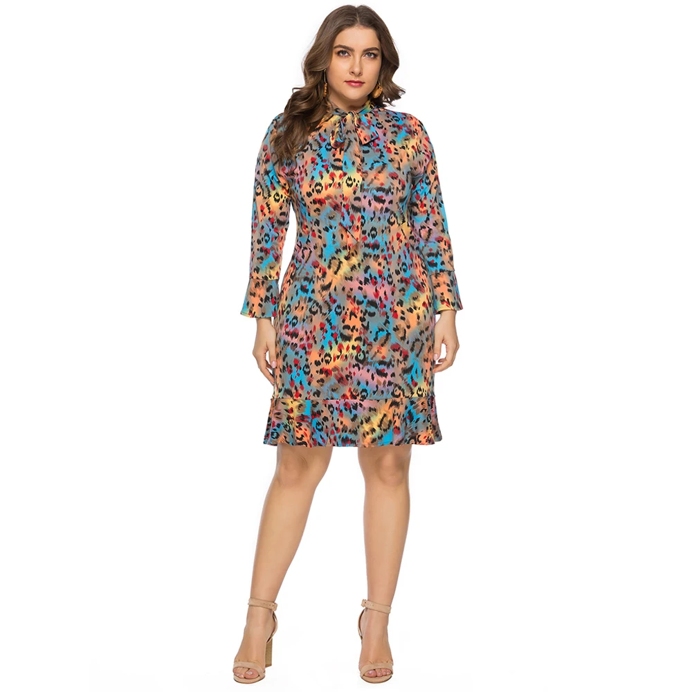 Женское платье с леопардовым принтом Wipalo, повседневное мини-платье с бантом и оборками, весеннее платье большого размера 6XL