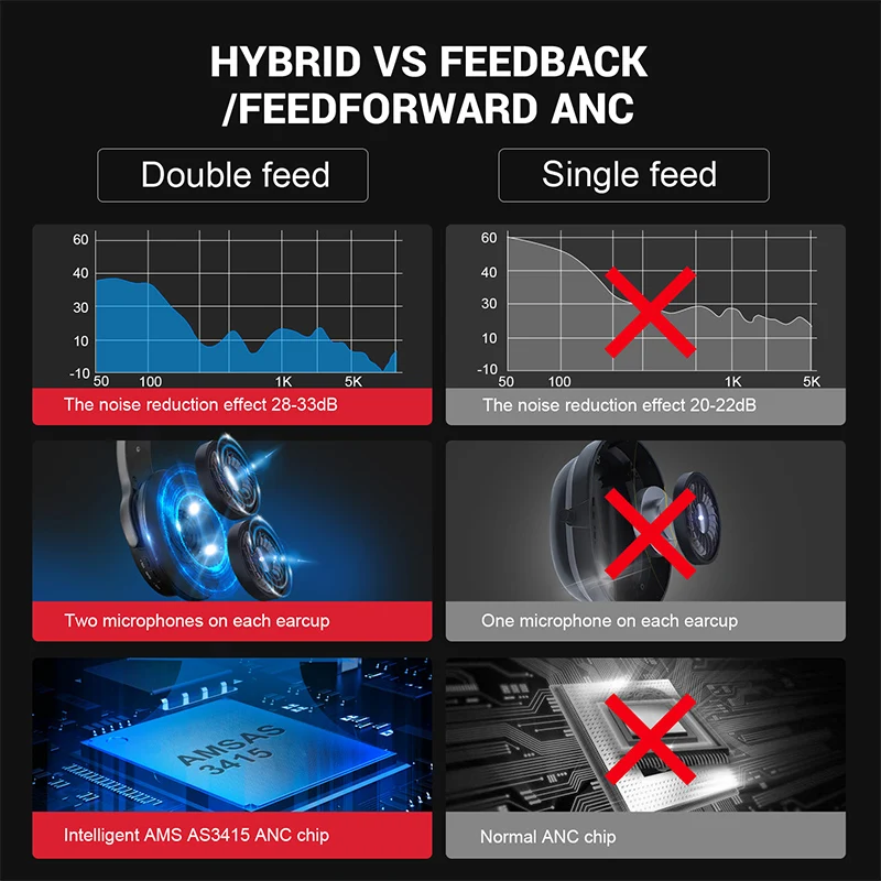 Описание продукта: Наушники с активным шумоподавлением, складные Супер-светильник, удобные наушники со встроенным микрофоном Высокое качество стереозвука, без функции задержки звука, идеально подходит для ТВ/ПК/игр и мобильных телефонов Дополнительный аудиовход, для использования, когда аккумулятор низкий Сверхмягкие накладные вкладыши с регулируемой повязкой на голову Беспроводные и проводные Режимы 2 в 1, управление без рук Технические характеристики: Емкость аккумулятора: 500 мАч Версия Bluetooth: V4.1 Набор микросхем Bluetooth: CSR8635 Профиль Bluetooth: A2DP, AVRCP, HSP, HFP Диапазон Bluetooth: 10 м/33 фута Набор микросхем ANC: AMS3415 Время зарядки: менее 3 часов Время работы 1: до 15 часов (ANC + BT) Время работы 2: до 30 часов (только BT) Время работы 3: до 26 часов (только ANC) Отношение сигнал/шум: 80dB Глубина шумоподавления: -28-33 дБ Сопротивление: 32 Диаметр драйвера: 40 мм Частотная характеристика: 20-20 кГц Чувствительность: 105 +/-3 дБ (при 1000 Гц) Что в коробке: Накладные наушники OneAudio с Bluetooth, 1 шт. (модель: A9) 1 x упаковочный чехол 1 x адаптер самолета 1x3,5 мм AUX кабель 1 x Кабель USB к Micro USB 1 x Руководство пользователя