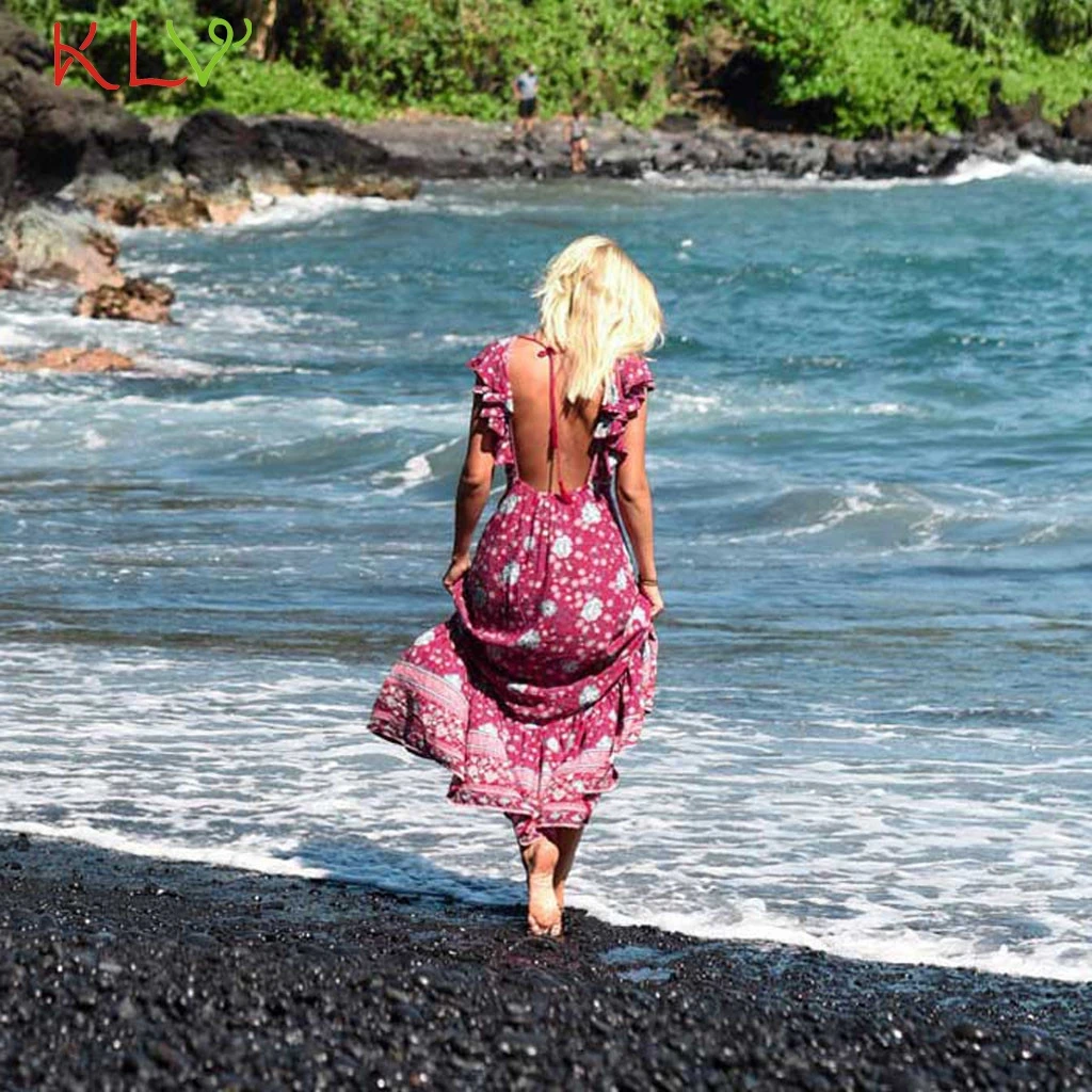 Богемное короткое платье с V образным вырезом и цветочным принтом длинным