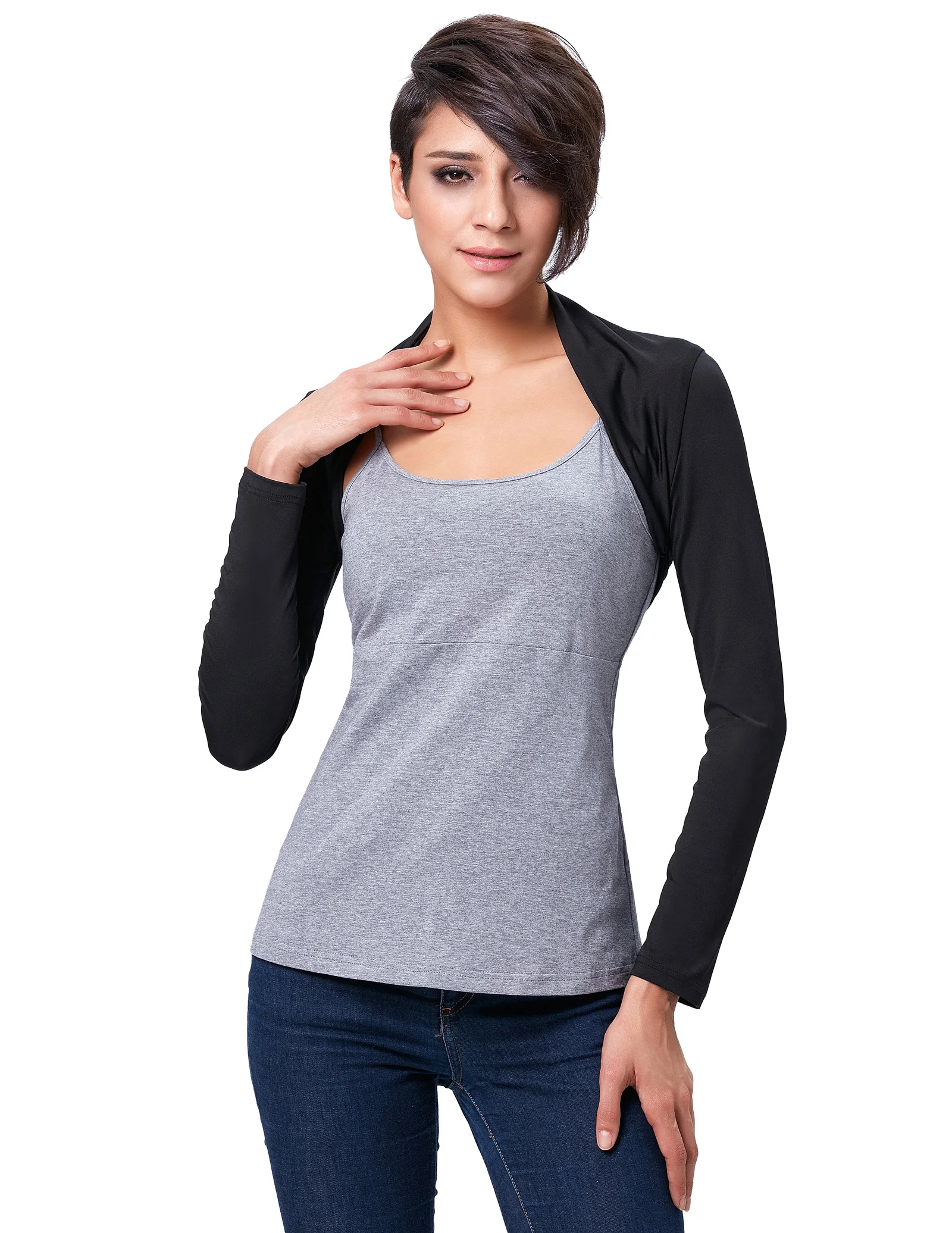 Описание товара | Болеро с длинными рукавами и высокой эластичностью, мягкий и удобный |