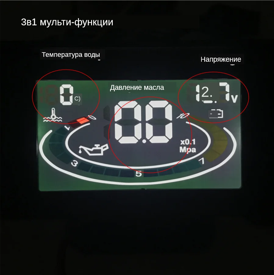 ЖК измеритель 3 в 1 - это новое поколение продуктов для замены традиционных механических и прямых индукционных автомобильных термометров для воды, напряжений и масляных манометров. Этот прибор использует передовые технологии MCU для контроля температуры воды резервуара в автомобиле, напряжения батареи и давления масла в двигателе в режиме реального времени. Этот прибор оснащен визуальным дисплеем, обладает высокой точностью, с низким энергопотреблением, с высокой производительностью, а также, широкий диапазон применения (12 В/24 В). Он достаточно прост в установке, будет долго служить в использовании и имеет полную функцию защиты. Также, в прибор встроен датчик. Этот прибор предназначен для измерения параметров автомобильных жидкостей, вольтметр и манометр.