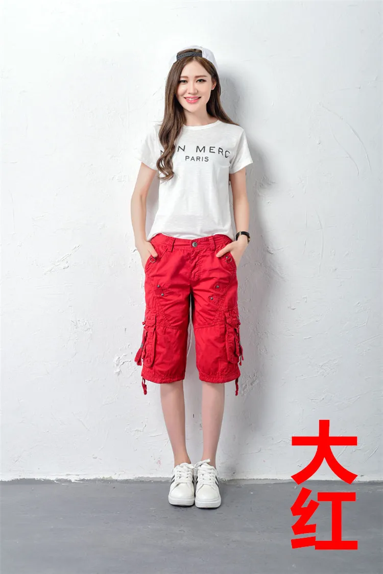 Женские летние шорты-карго #0917 повседневные Модные хлопковые прямые шорты со
