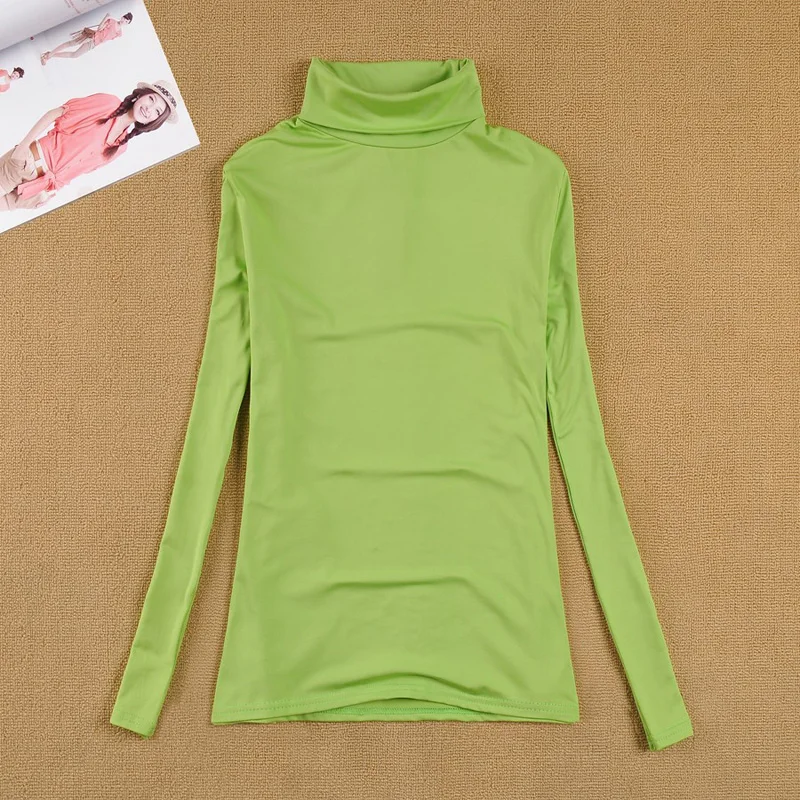 *Описание:Корейская женская Повседневная облегающая Однотонная футболка с высоким воротом и длинными рукавами