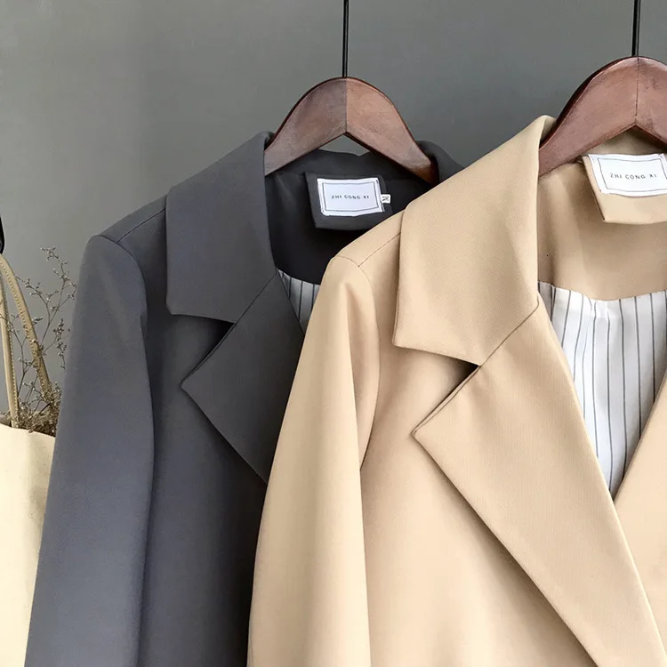 Женские блейзеры пальто новинка 2019 Офисная Женская куртка с поясом и Женский