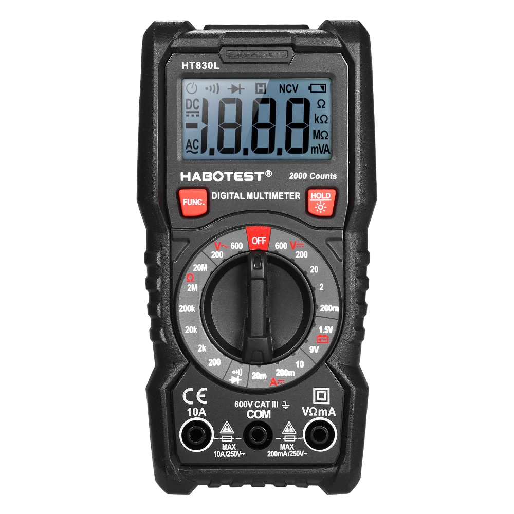 Нужно проверить электричество или решить автомобильные и бытовые электрические проблемы с мультиметром? Хотите более точный Диапазон отображения, как 2000 подсчетов, ведущий Топ текущей технологии? Вы можете выбрать наш HABOTEST мультиметр. Этот совершенно новый многофункциональный мультиметр с высокой точностью и высокой производительностью процессор микроконтроллера может измерять напряжение постоянного/переменного тока, постоянный ток, сопротивление. Он также может тестировать диод и непрерывность. С кронштейном на спине, удобно разместить его на столе и прочитать значения.