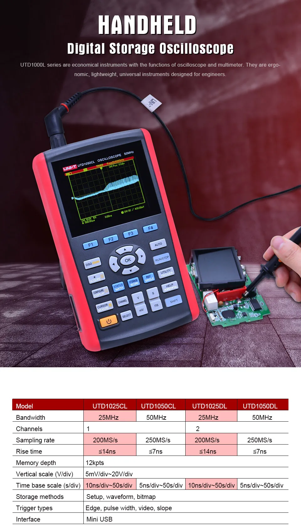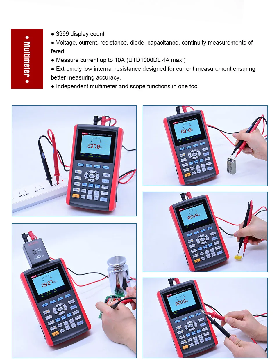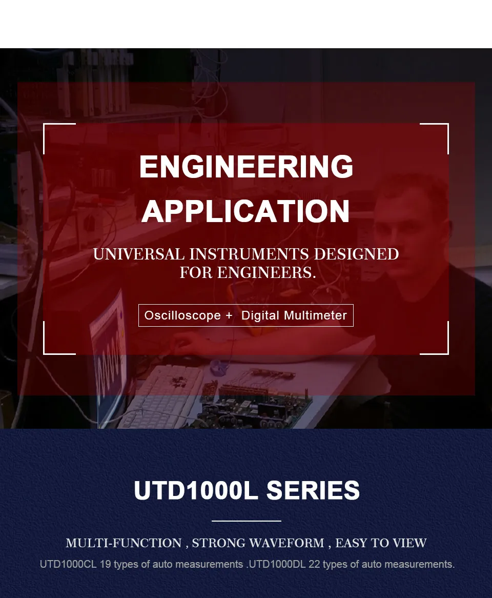 Серия UTD1000L-это Экономичные инструменты с функциями осциллографа и мультиметра. Они эргономичные, легкие, универсальные инструменты, разработанные для инженеров.