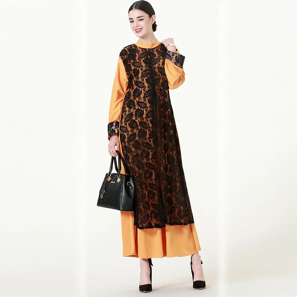 Женское мусульманское платье-макси с длинным рукавом и круглым вырезом, длинное платье-Кафтан Jilbab Islamic, 2019