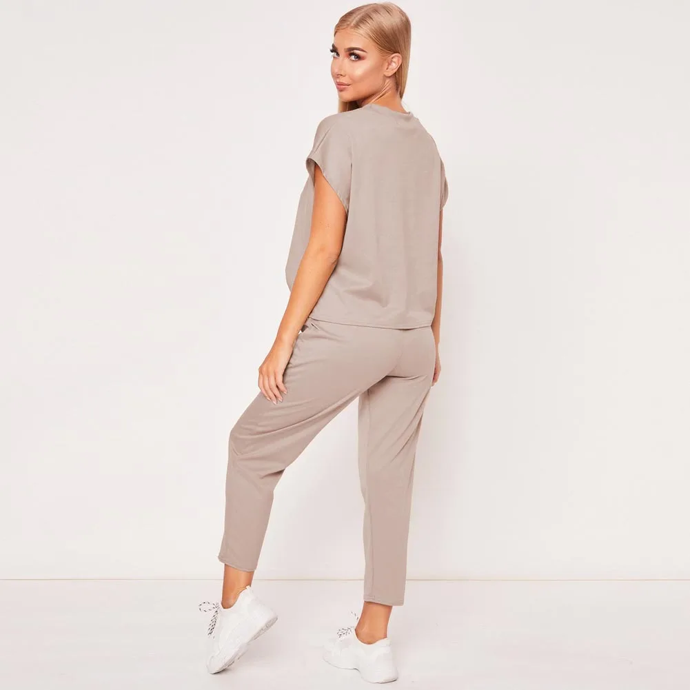 Женский весенний летний спортивный костюм с коротким рукавом из 2 предметов, комплект с топом и штанами, дамский костюм для отдыха