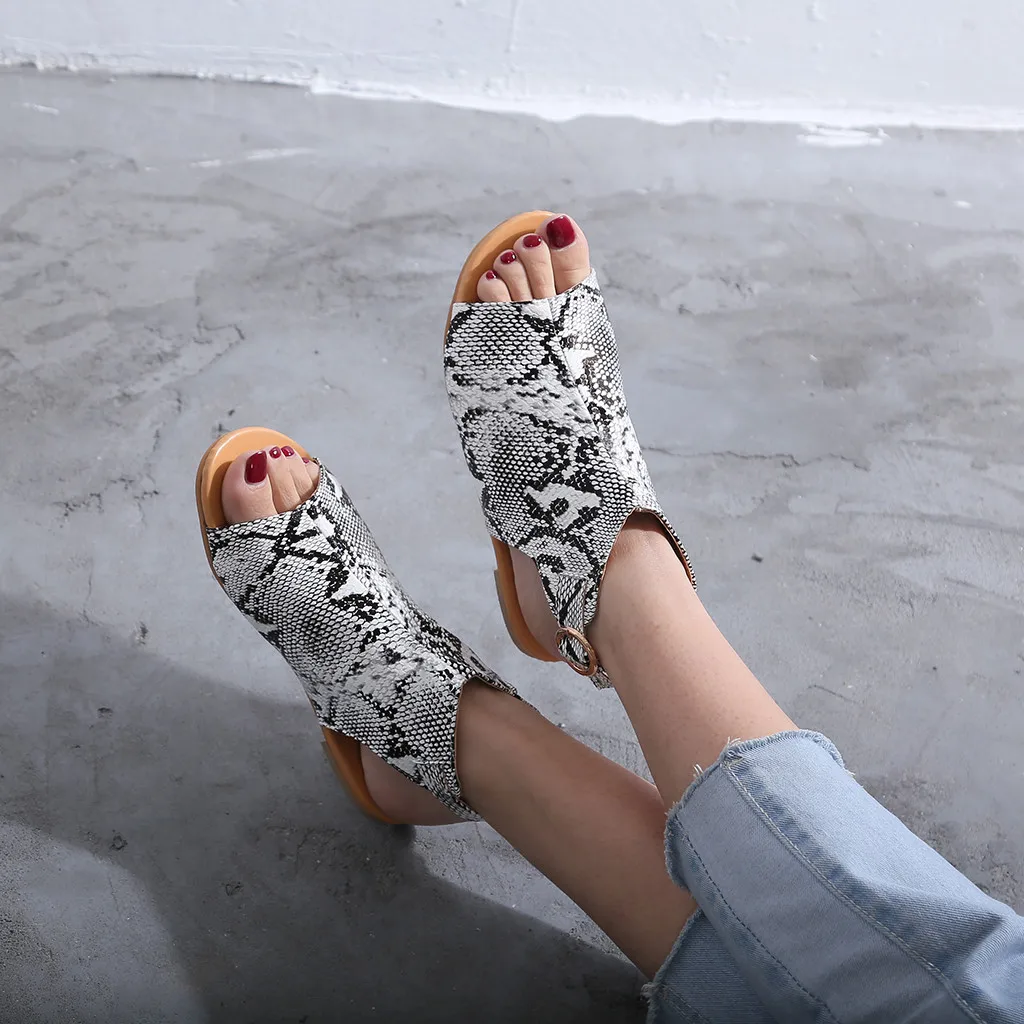 Женская модная повседневная обувь с открытым носком на плоской подошве с пряжкой; сандалии