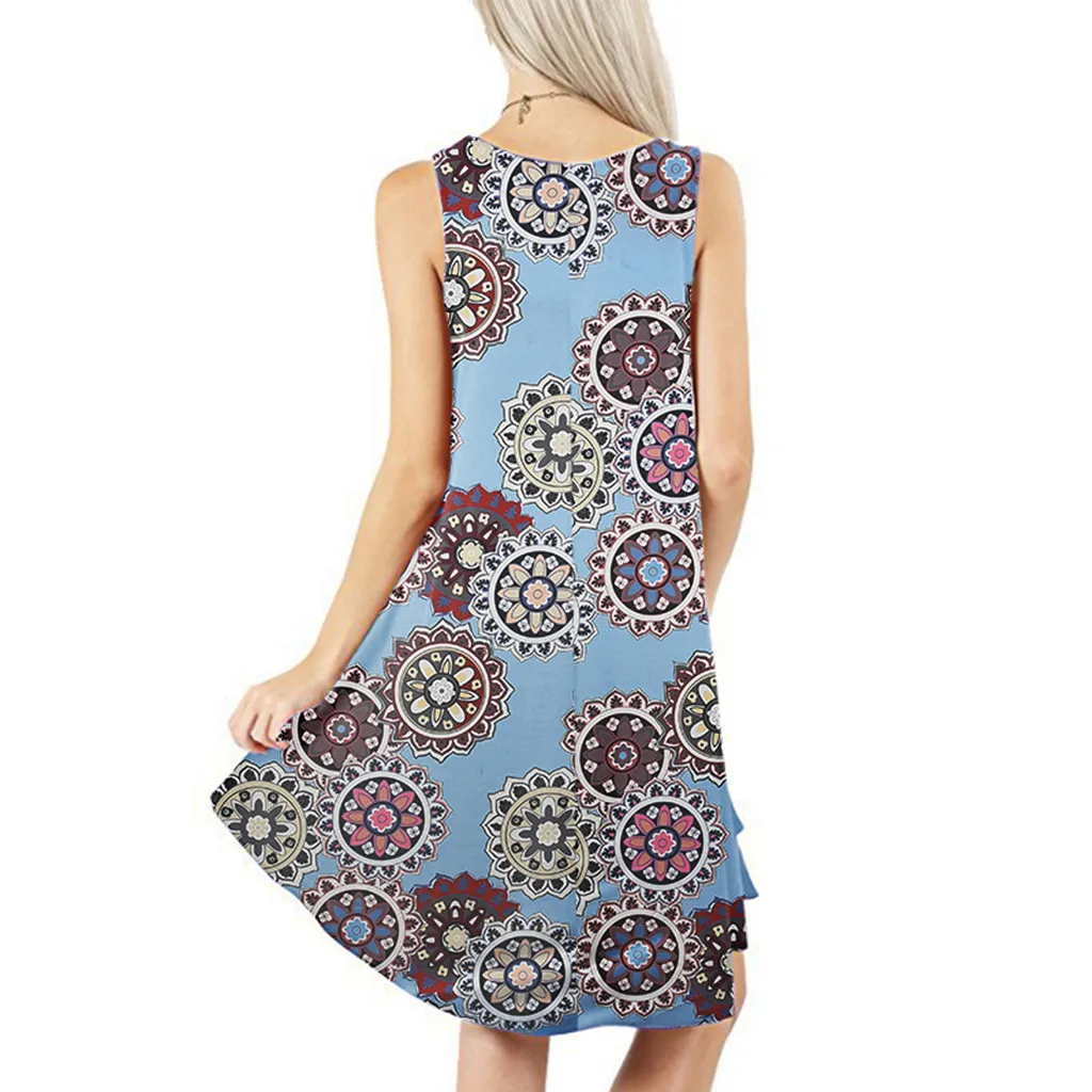 Летнее платье женское сексуальное повседневное с высокой талией однотонное льняное платье с круглым вырезом без рукавов с оборками миди платье-сарафан новое Повседневное платье трапециевидной формы