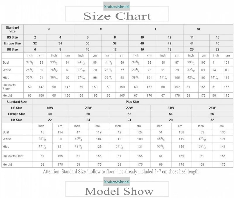 Вы можете выбрать любой размер, чтобы сделать заказ и оставить нам сообщение о ваших собственных измерениях, так как это будет нормально! 1); Обхват груди; Длина _ 2); Талия: _ 3) бедра _ 4) полые в пол без обуви _ 5) естественная высота без обуви _ 6) Примерная высота каблука обуви, которая может использоваться для этого платья _ Внимание: для нормального размера, мы предлагаем бесплатный заказ, но если размер слишком большой, превосходит 18 W, это будет нужно 20 $ ~ 35 $ дополнительную плату!