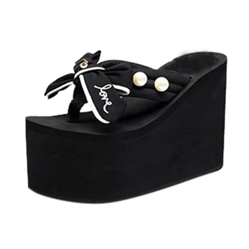 Женская обувь; женские вьетнамки на танкетке с жемчужным бантом; шлепанцы; пляжная обувь; обувь в простом стиле; M9