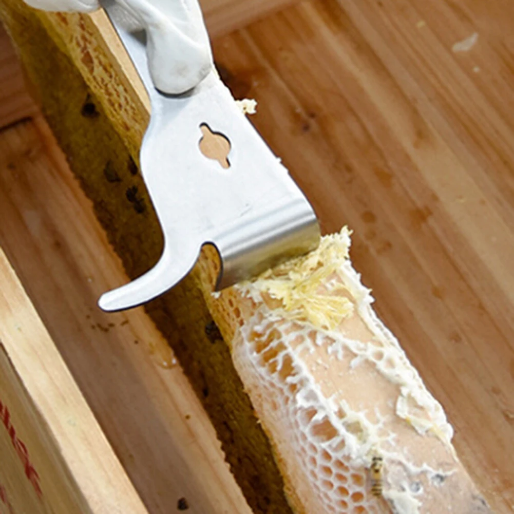 Изготовлен из прочной нержавеющей стали. Подходит для разделения ящиков улья, вырезания рам и скребка воска и прополиса.