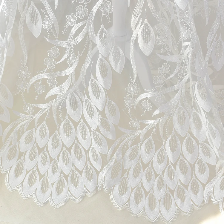 Foliage embroidered lace fabric for wedding dress adornment high-end cloth hand-made DIY tulle mesh fabric