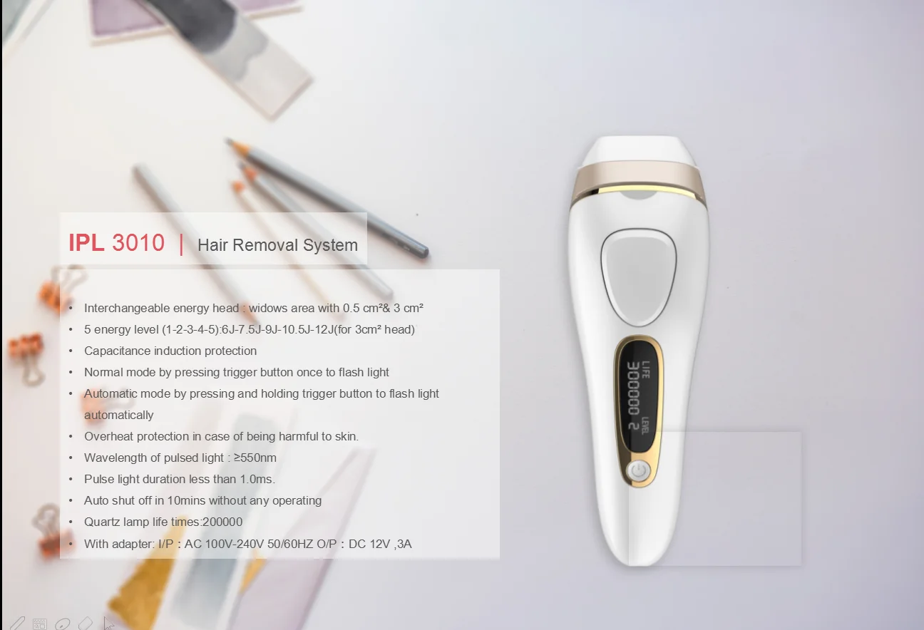 2. 5 уровня энергии (1-2-3-4-5): 6J-7.5J-9J-10.5J-12J (для головки 3cm2);