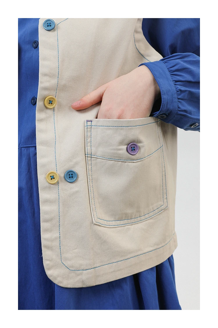 Женский укороченный джинсовый жилет красно синяя Базовая джинсовая куртка без