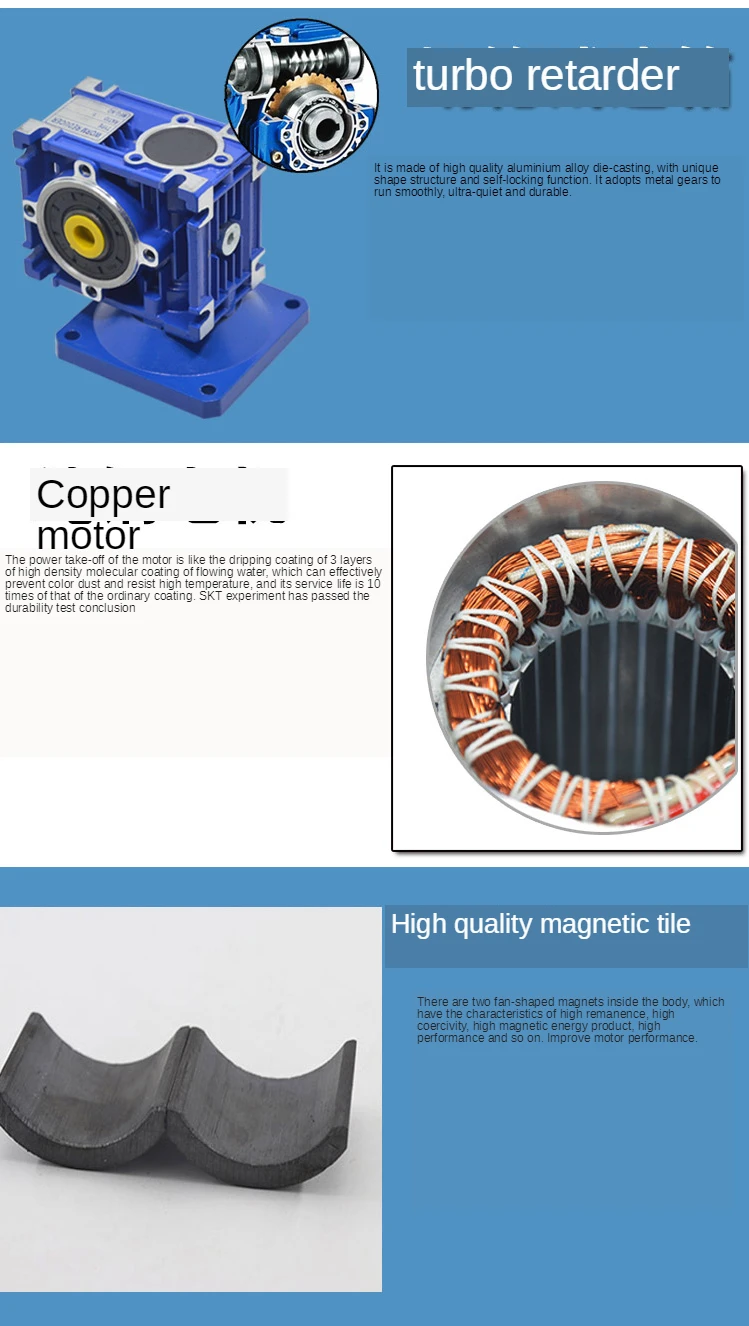 2. Турбо-редуктор с использованием высококачественного алюминиевого сплава прессован, уникальная форма и функция самоблокировки, протрите металлической шестерней плавно, ультра-тихий, прочный.